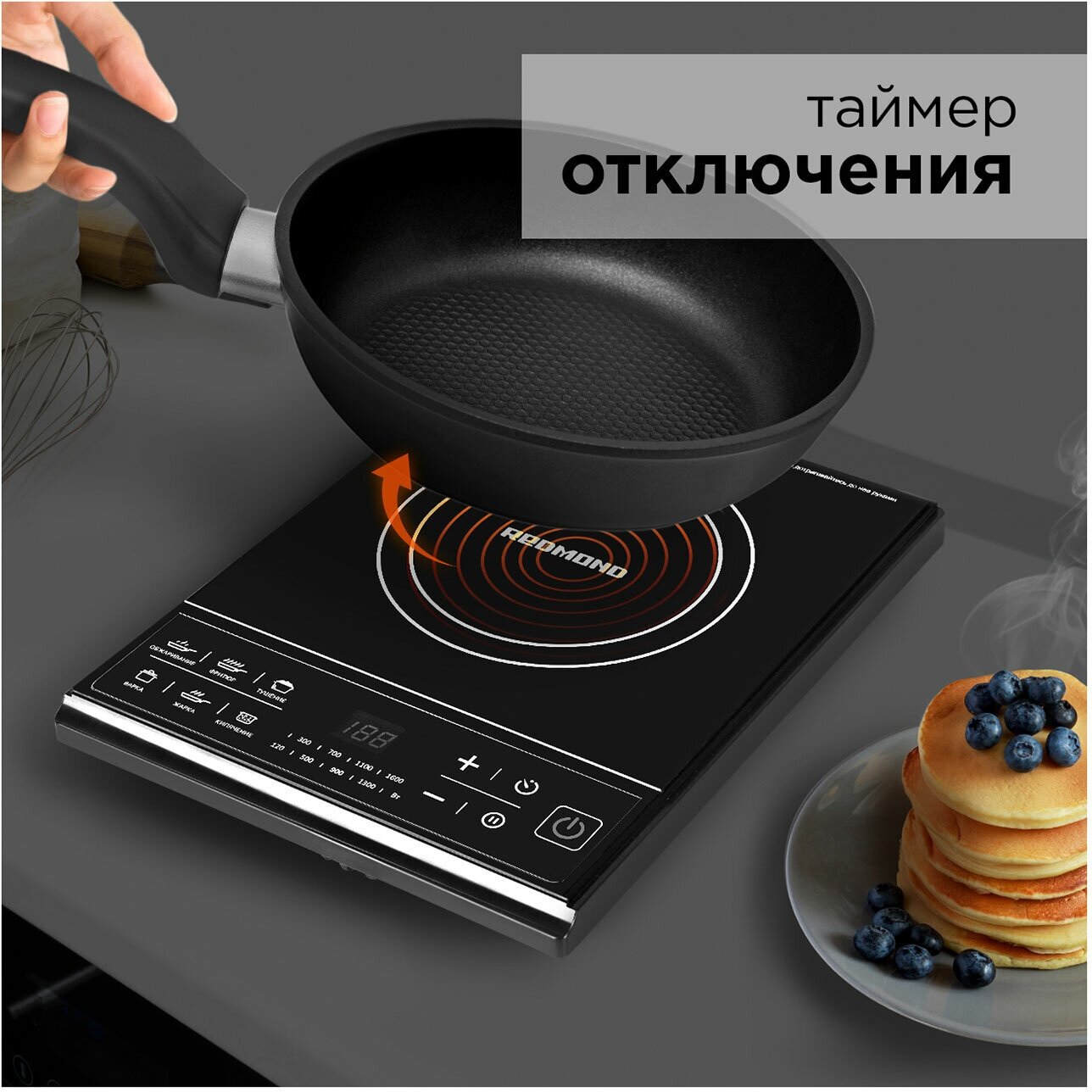 Электроплита REDMOND RIC-4601, индукционная, настольная, сенсорное управление интересное: