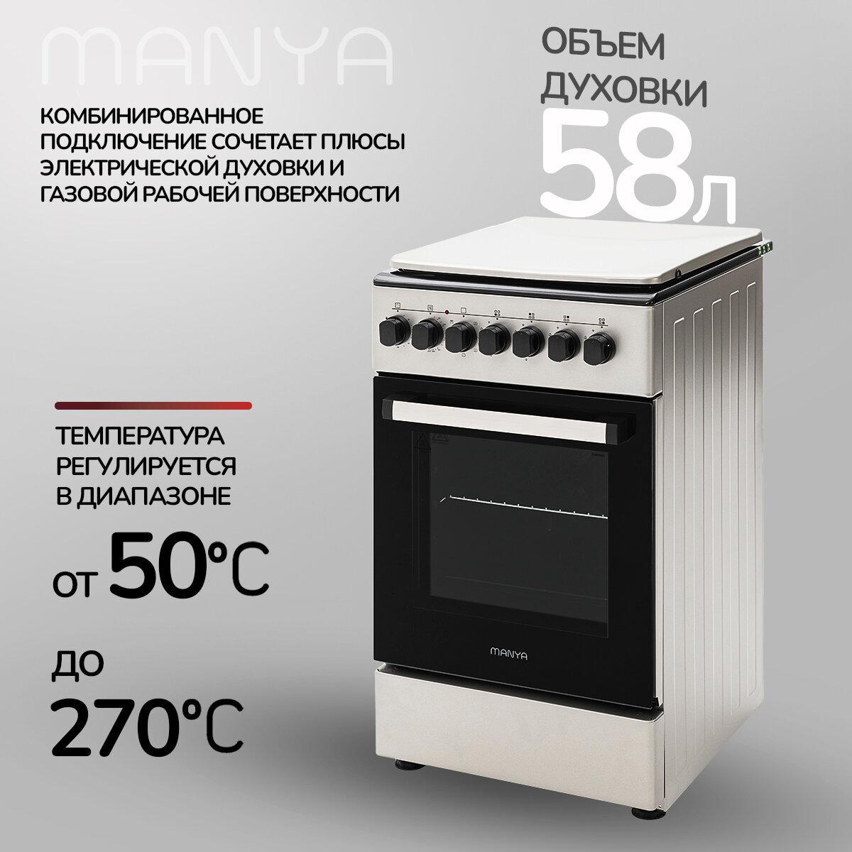 Газовая плита комбинированная с электрической духовкой 50см MANYA MC5012S гриль, конвекция интересное: