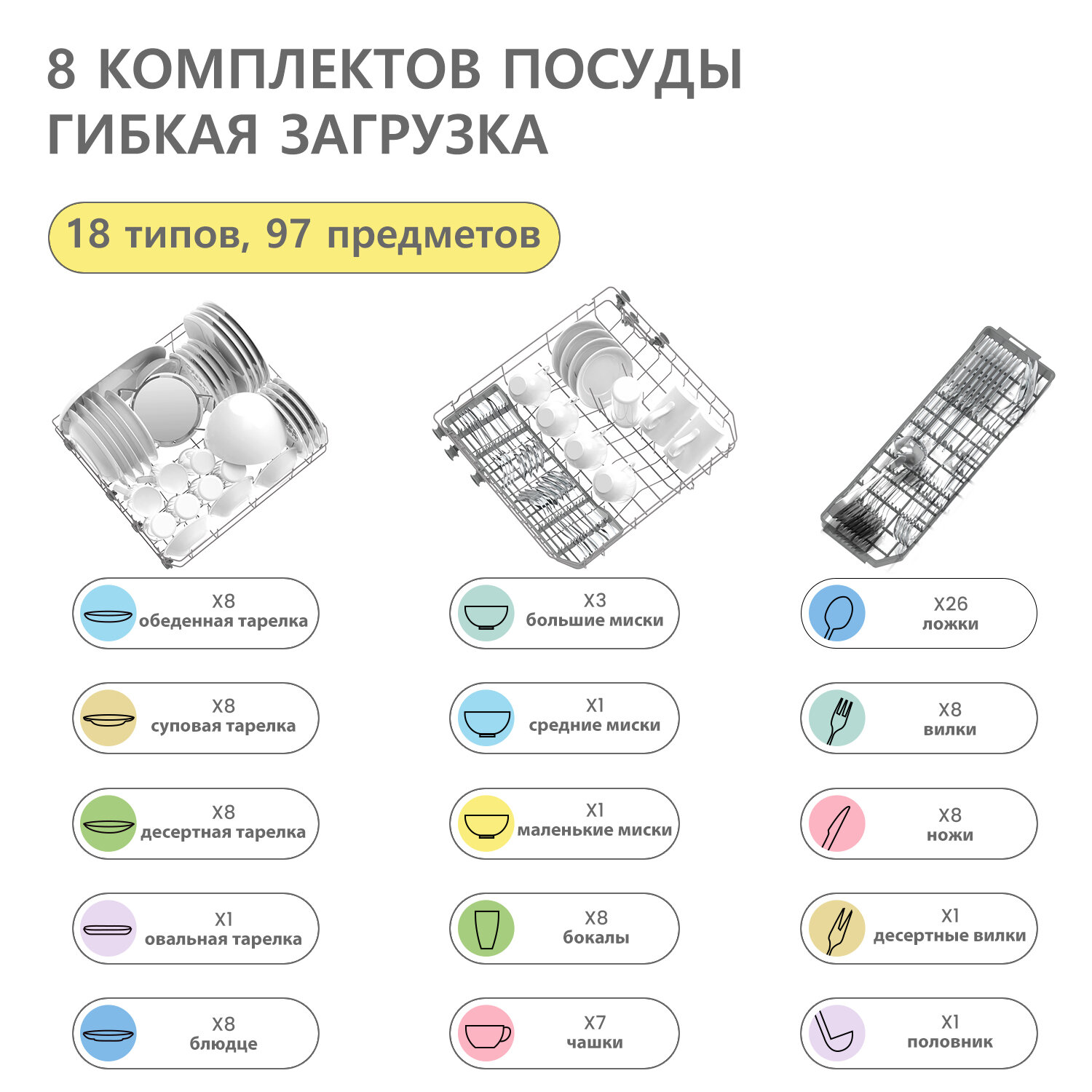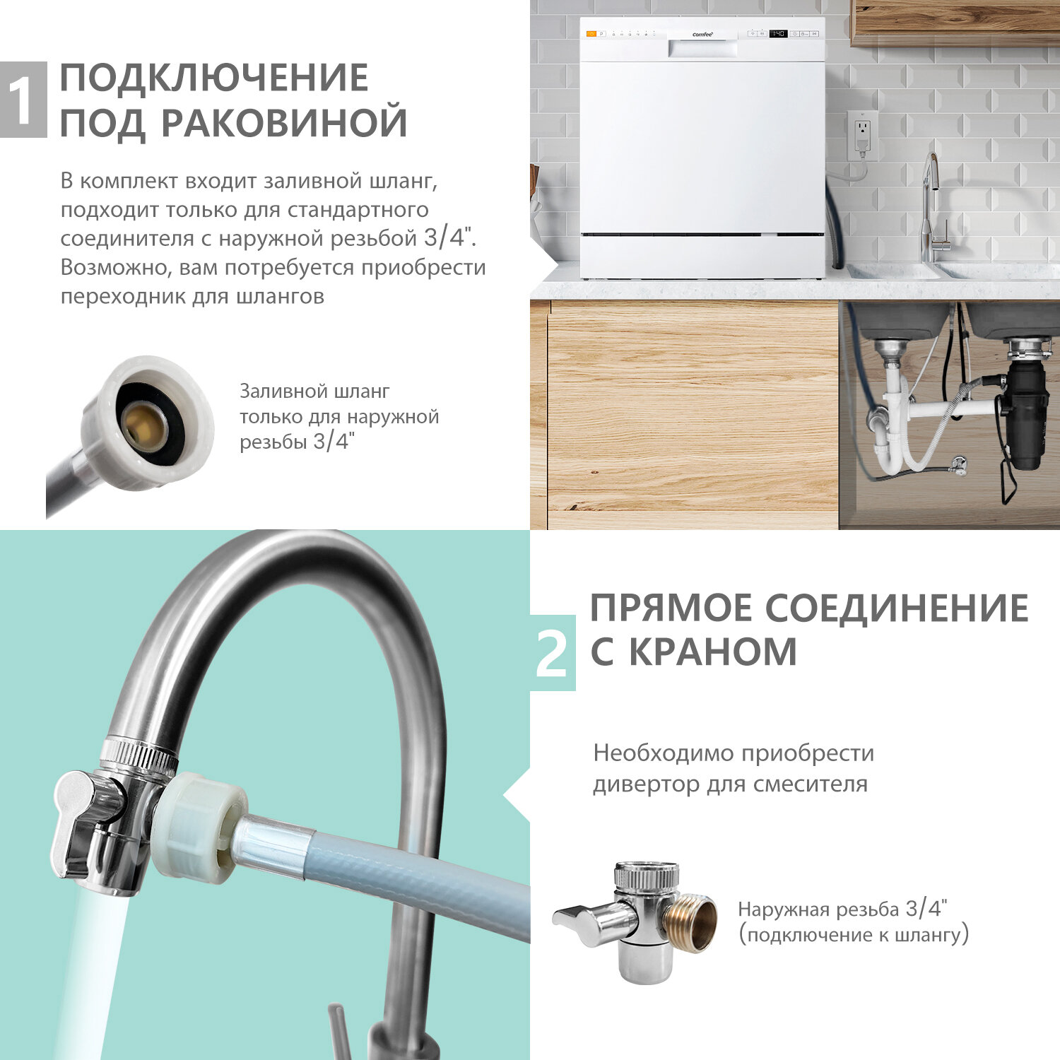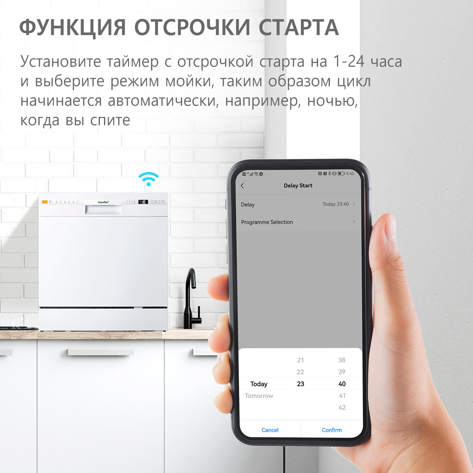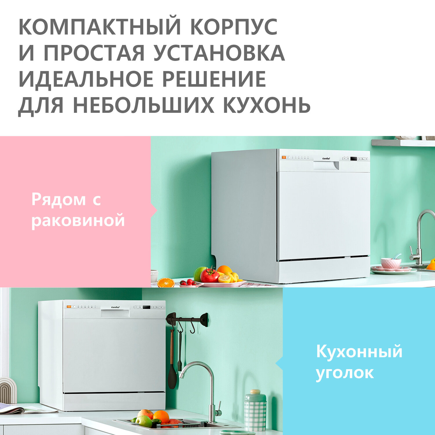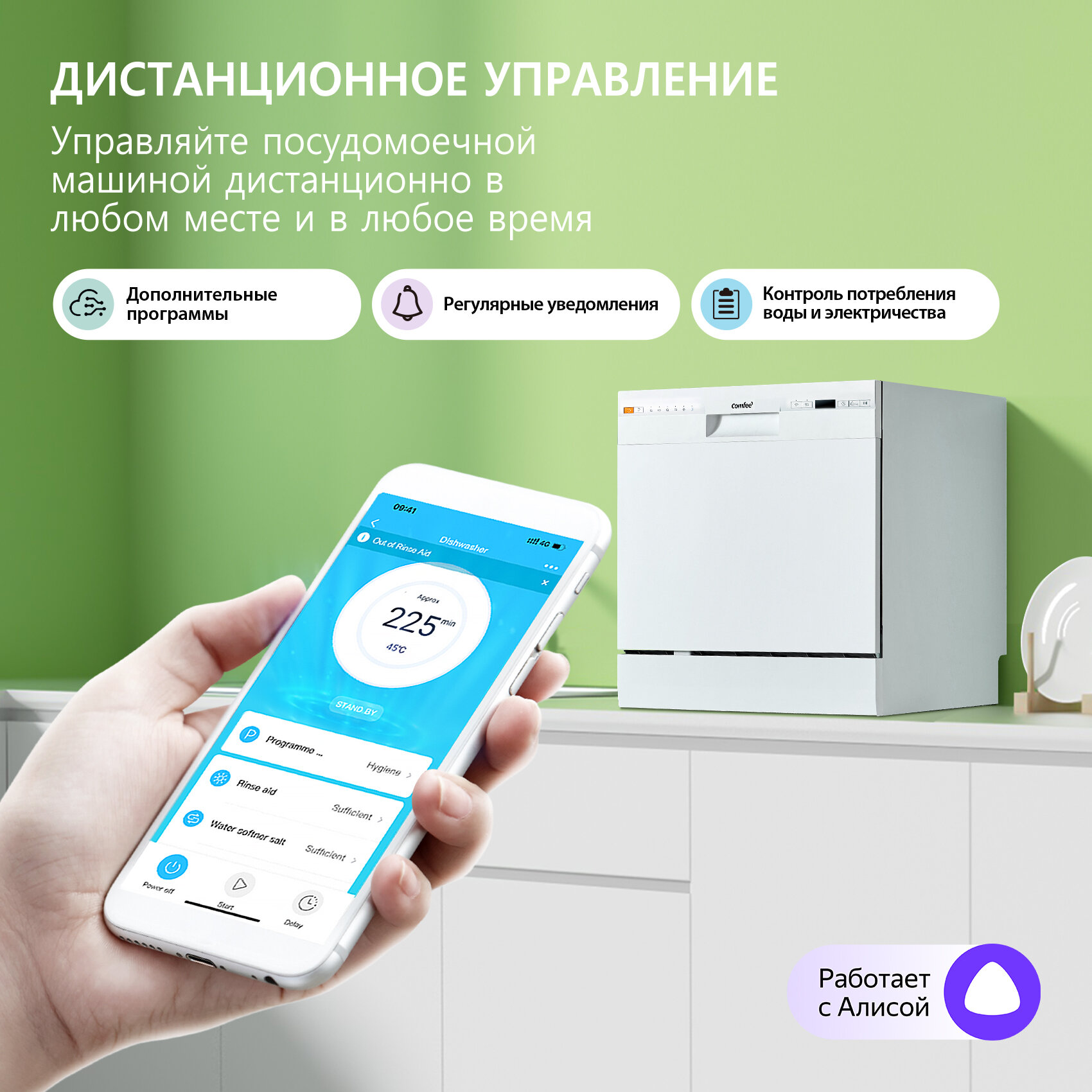 Компактная посудомоечная машина Comfee CDWС552Wi, Wi-Fi, 8 комплектов, 7 программ, самоочистка, экспресc-мойка интересное: