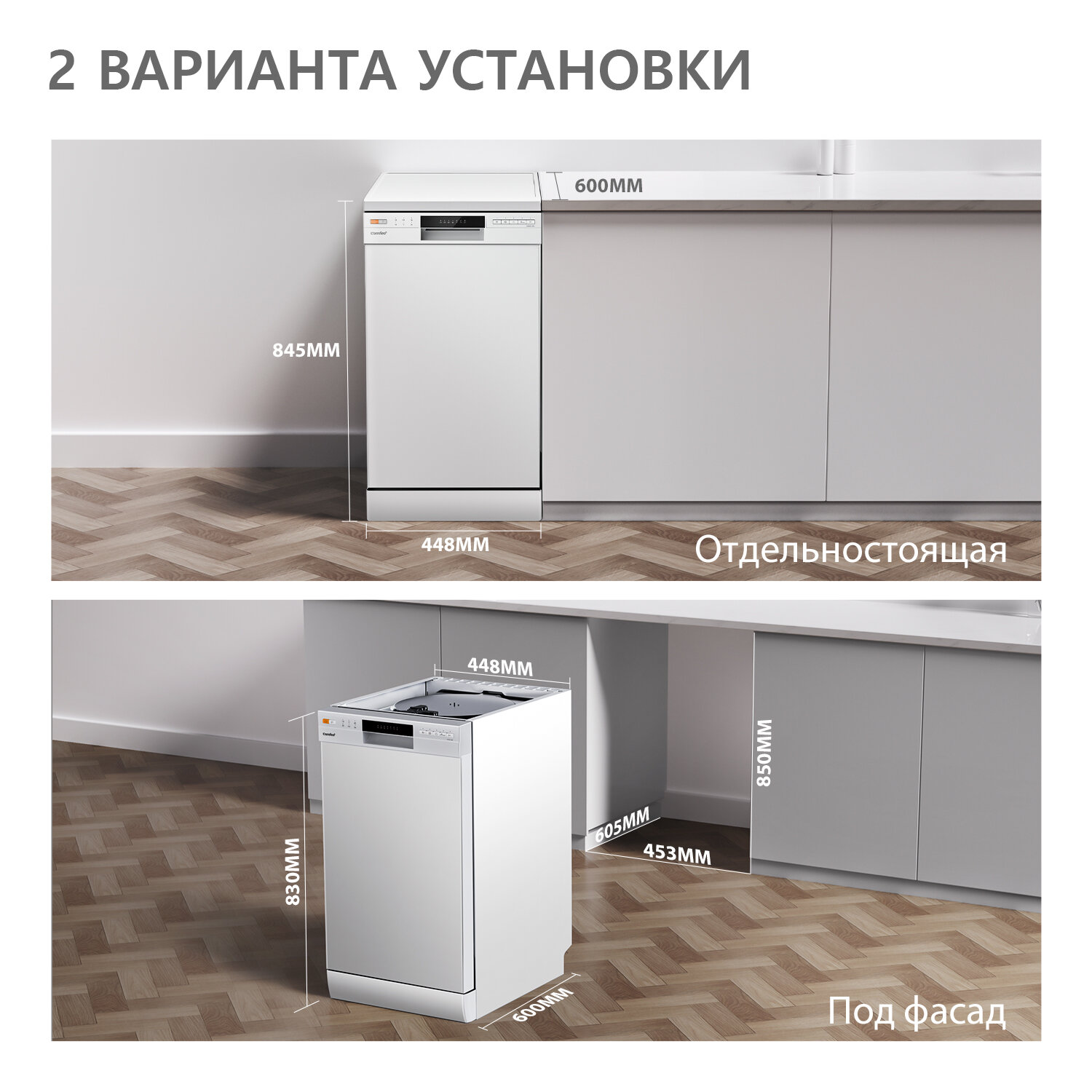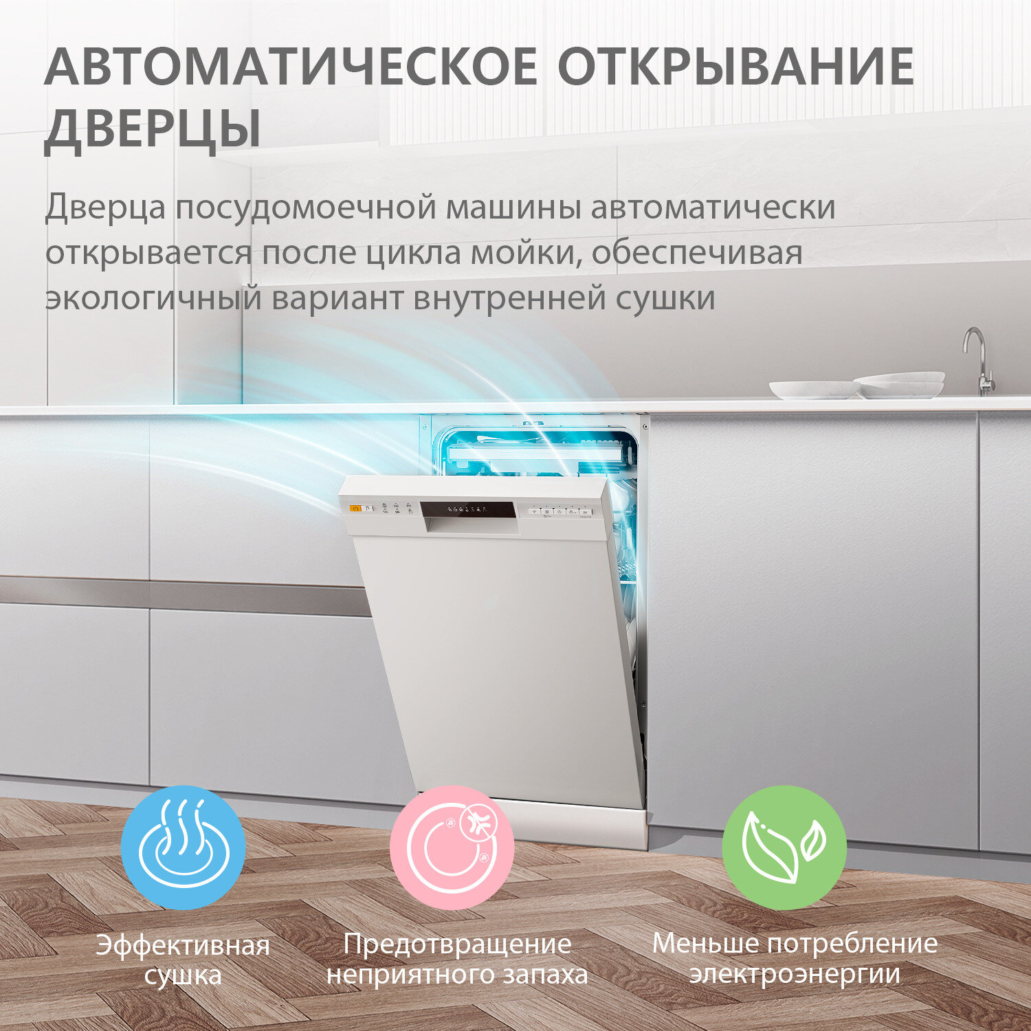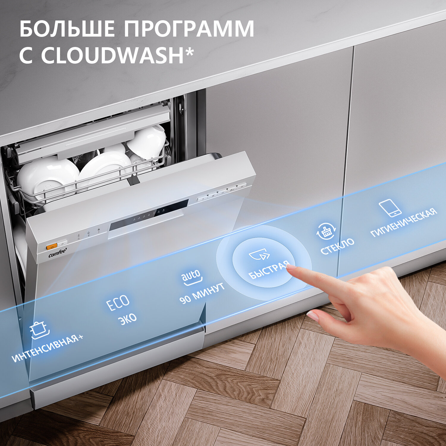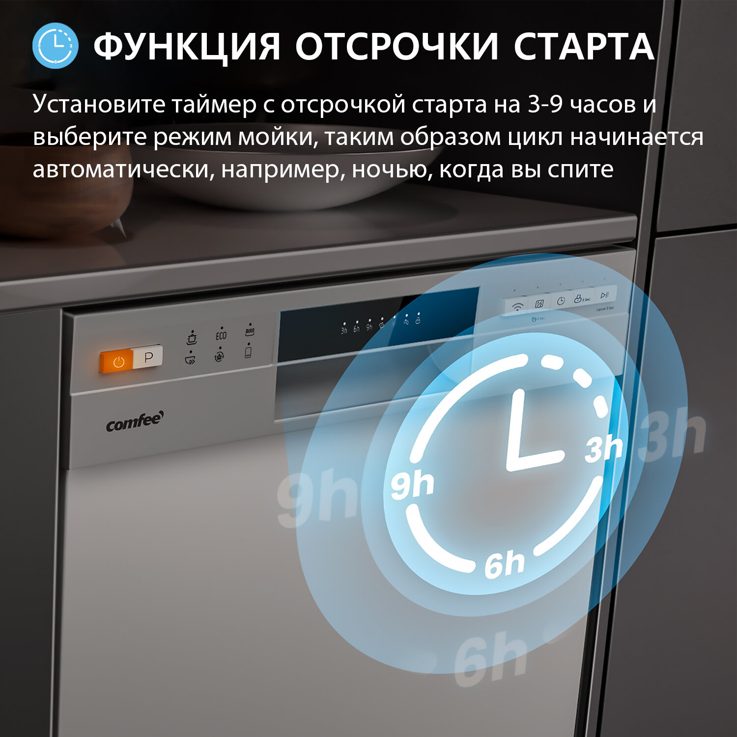 Отдельностоящая посудомоечная машина Comfee CDW454Wi, 45 см, 3 корзины, 10 комплектов, 8 программ, Wi-Fi, самоочистка, автооткрывание двери интересное: