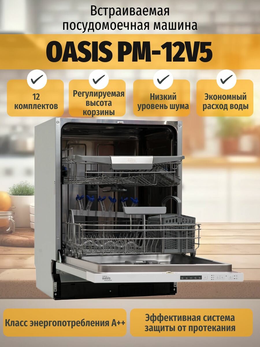 Купить Посудомоечная машина OASIS "PM-12V5", встраиваемая, 5 программ, защита от протечек