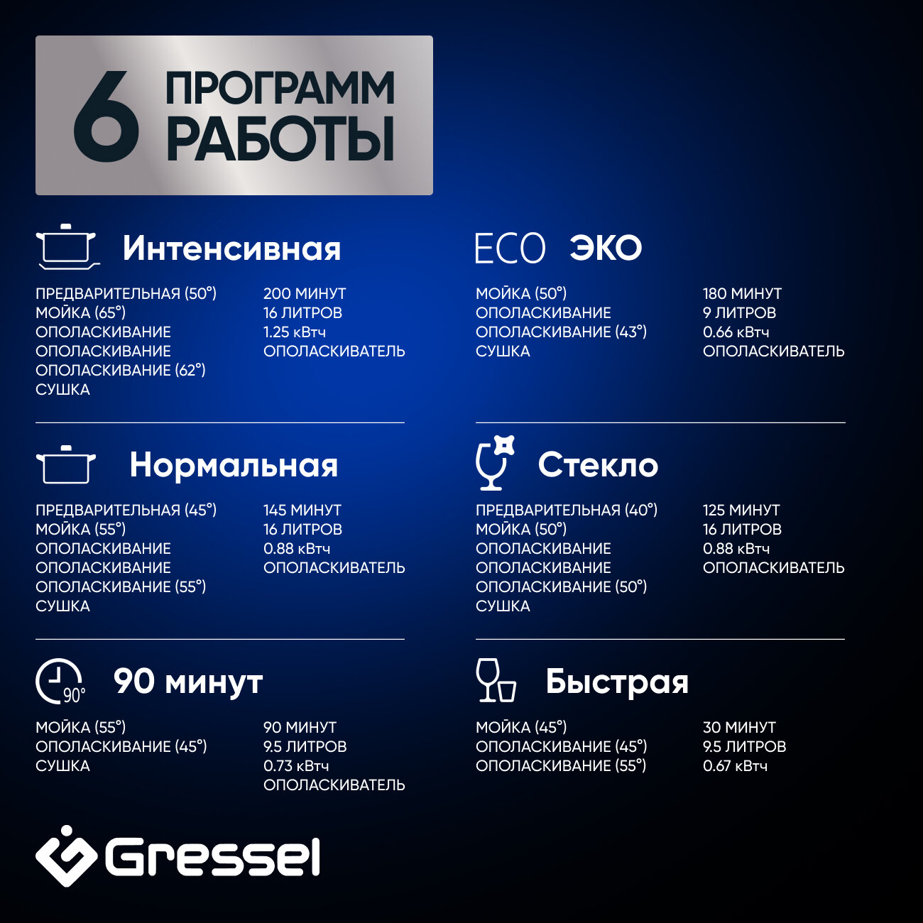 Посудомоечная машина Gressel UBB502, встраиваемая, загрузка 10 комплектов интересное: