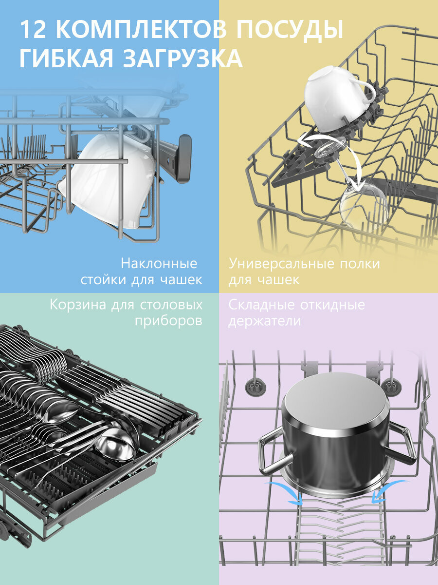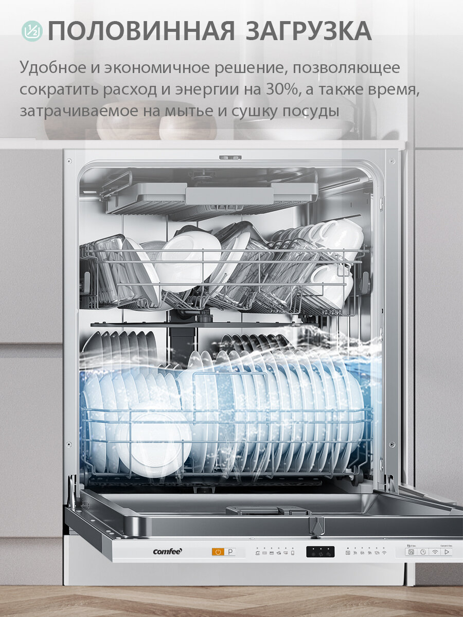 Встраиваемая посудомоечная машина Comfee CDWI604i, 60 см, 3 корзины, 12 комплектов, 8 программ, луч на полу, Wi-Fi, автооткрывание двери интересное:
