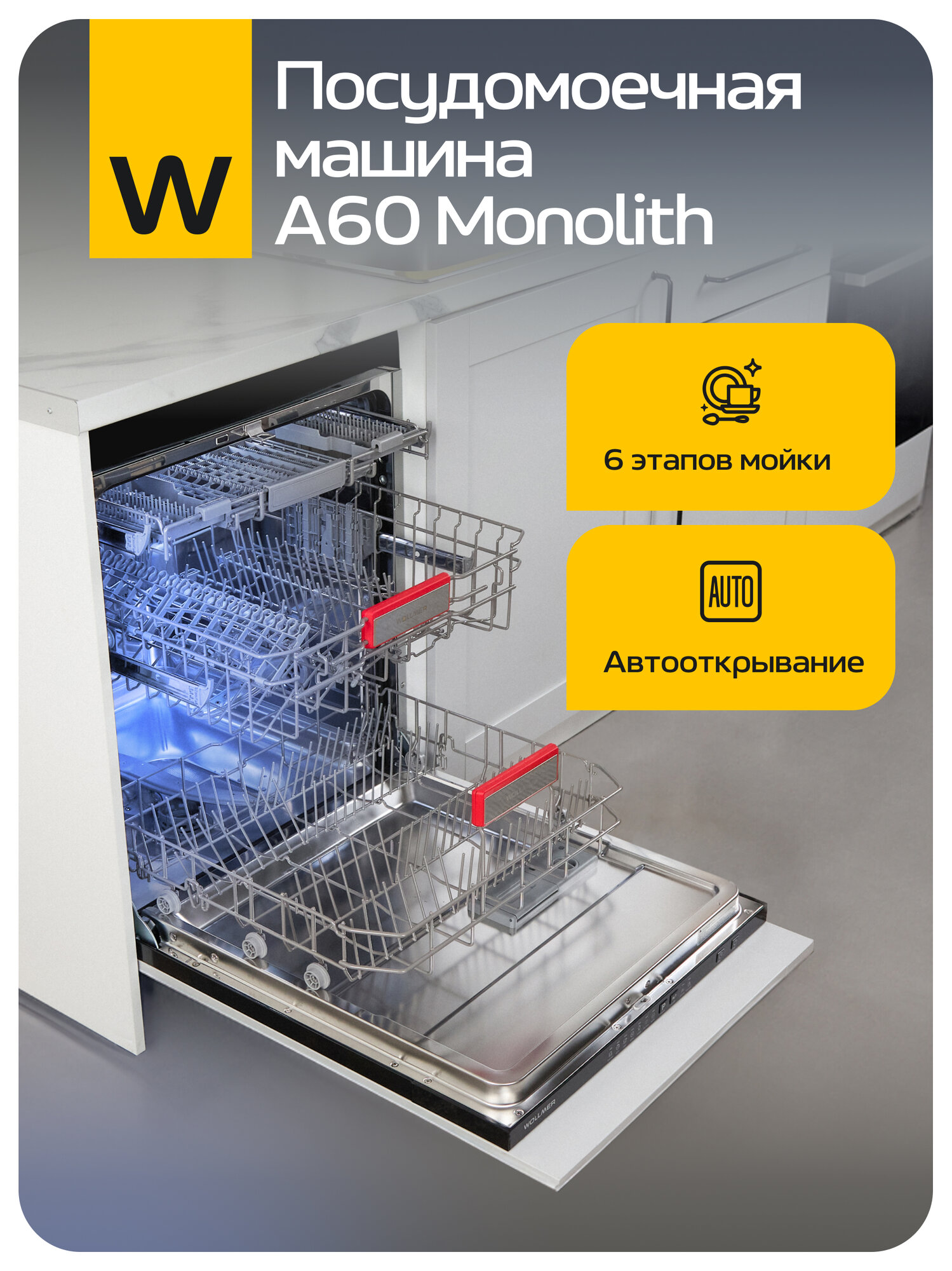 Посудомоечная машина Wollmer A60 Monolith интересное: