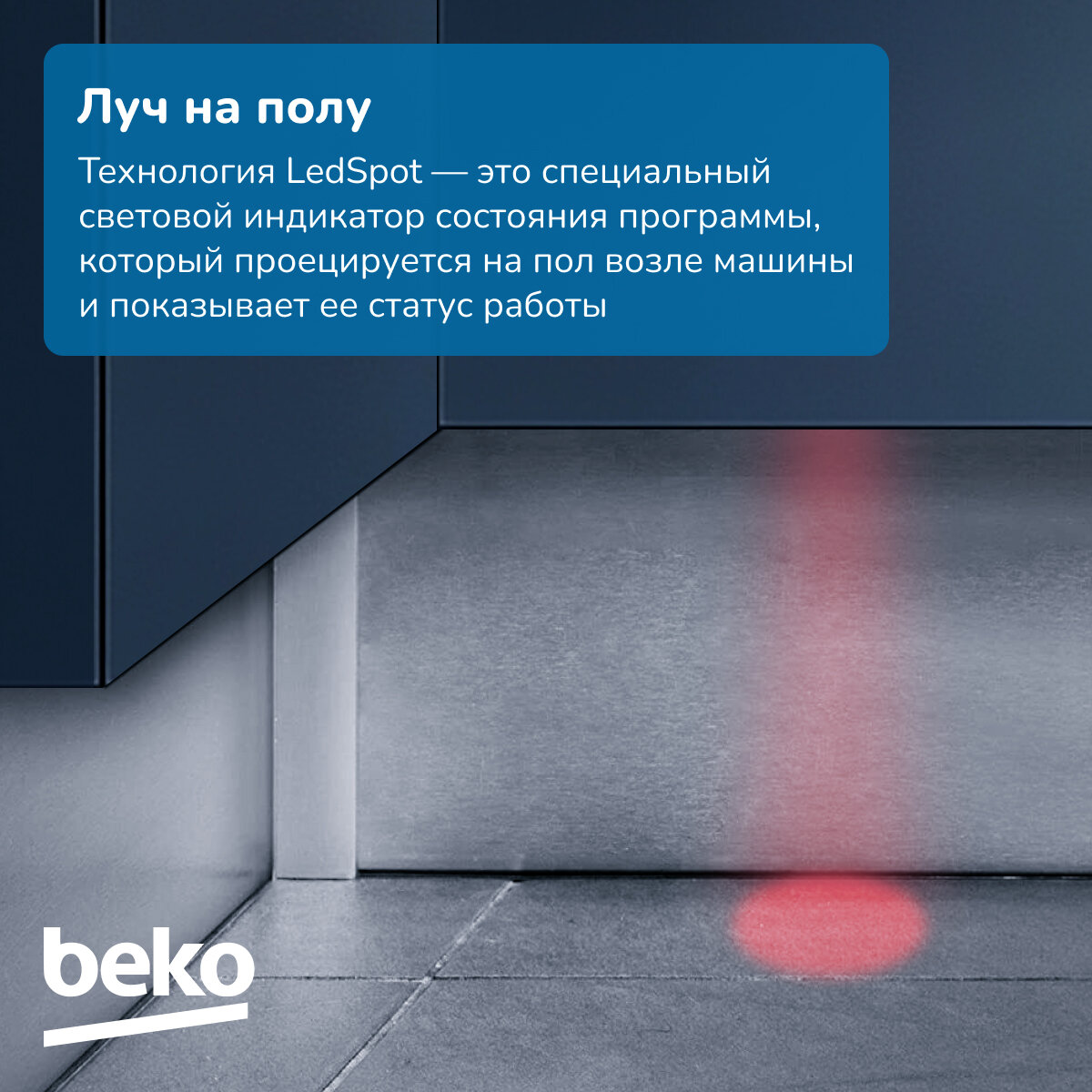 Встраиваемая посудомоечная машина Beko (60см), загрузка 15 комплектов, LedSpot (луч на полу), система защиты от протечек интересное:
