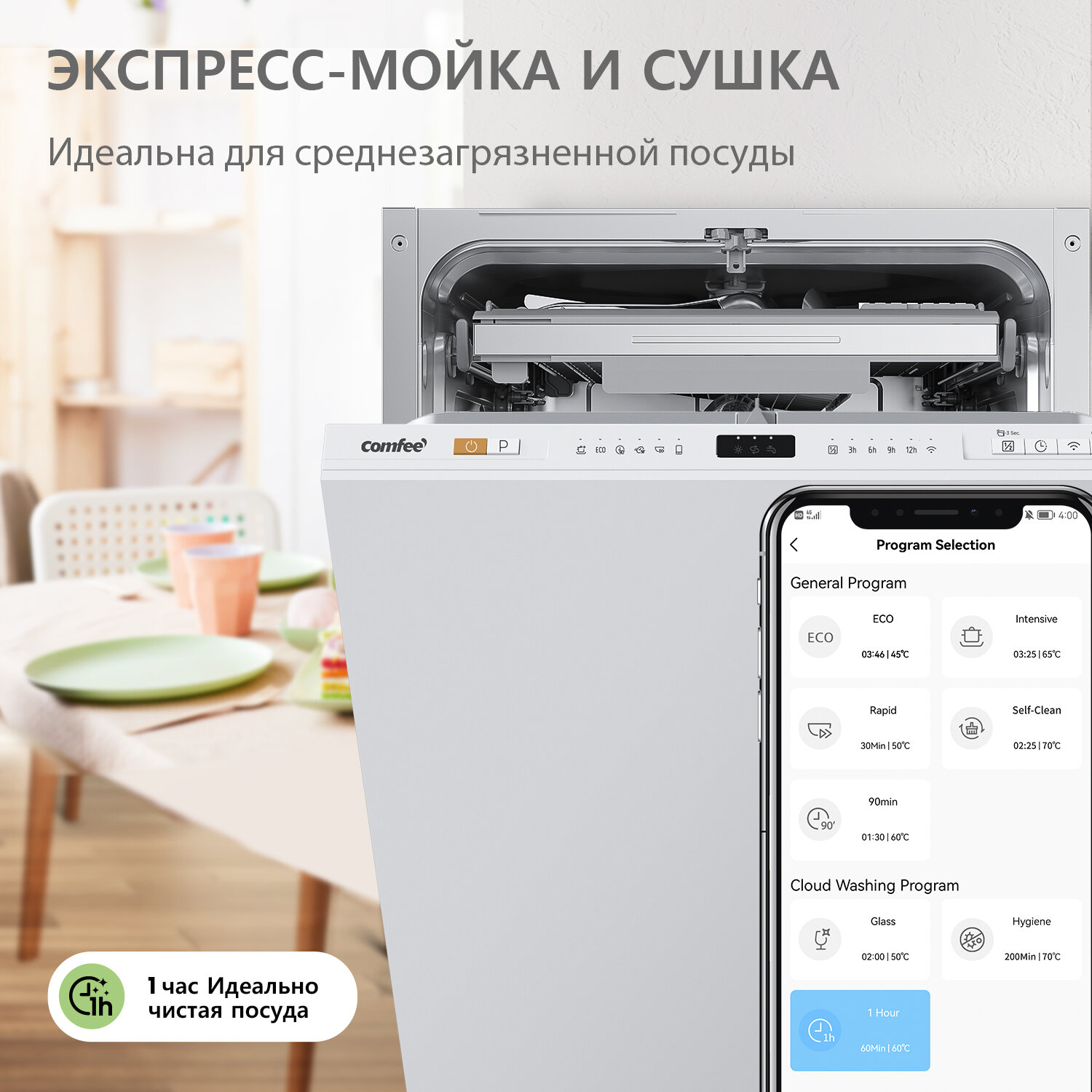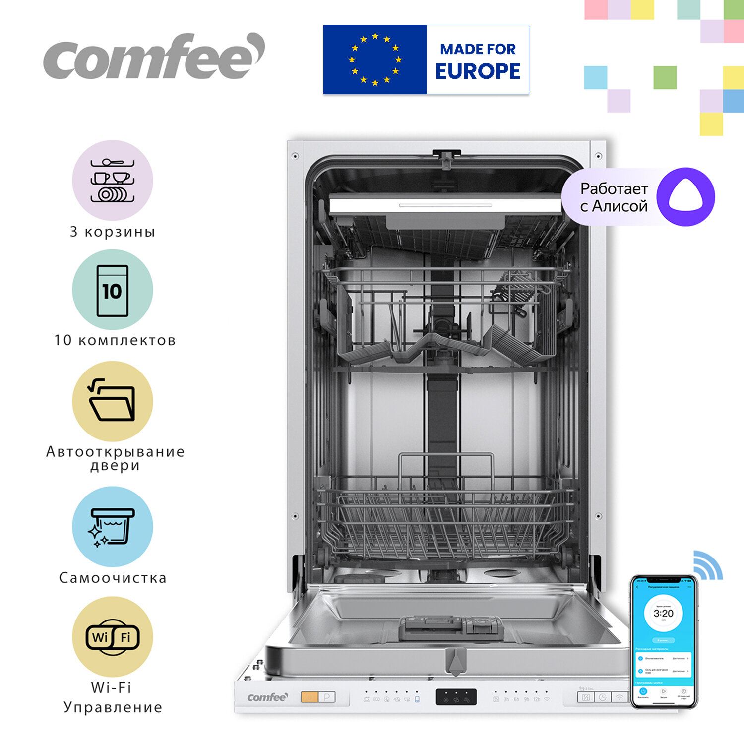 Встраиваемая посудомоечная машина Comfee CDWI453i, 45 см, 3 корзины, 10 комплектов, 8 программ, Wi-Fi, автооткрывание двери интересное: