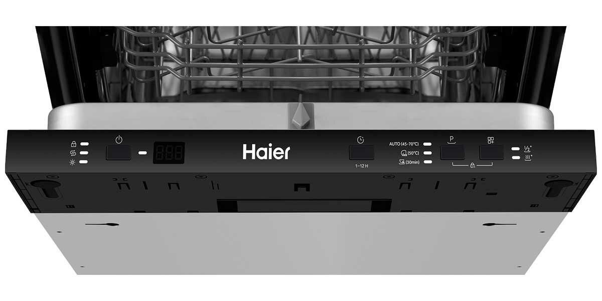 Встраиваемая узкая посудомоечная машина Haier HDWE10-394RU на 10 комплектов посуды , конденсационная сушка, третья корзина для столовых приборов. интересное: