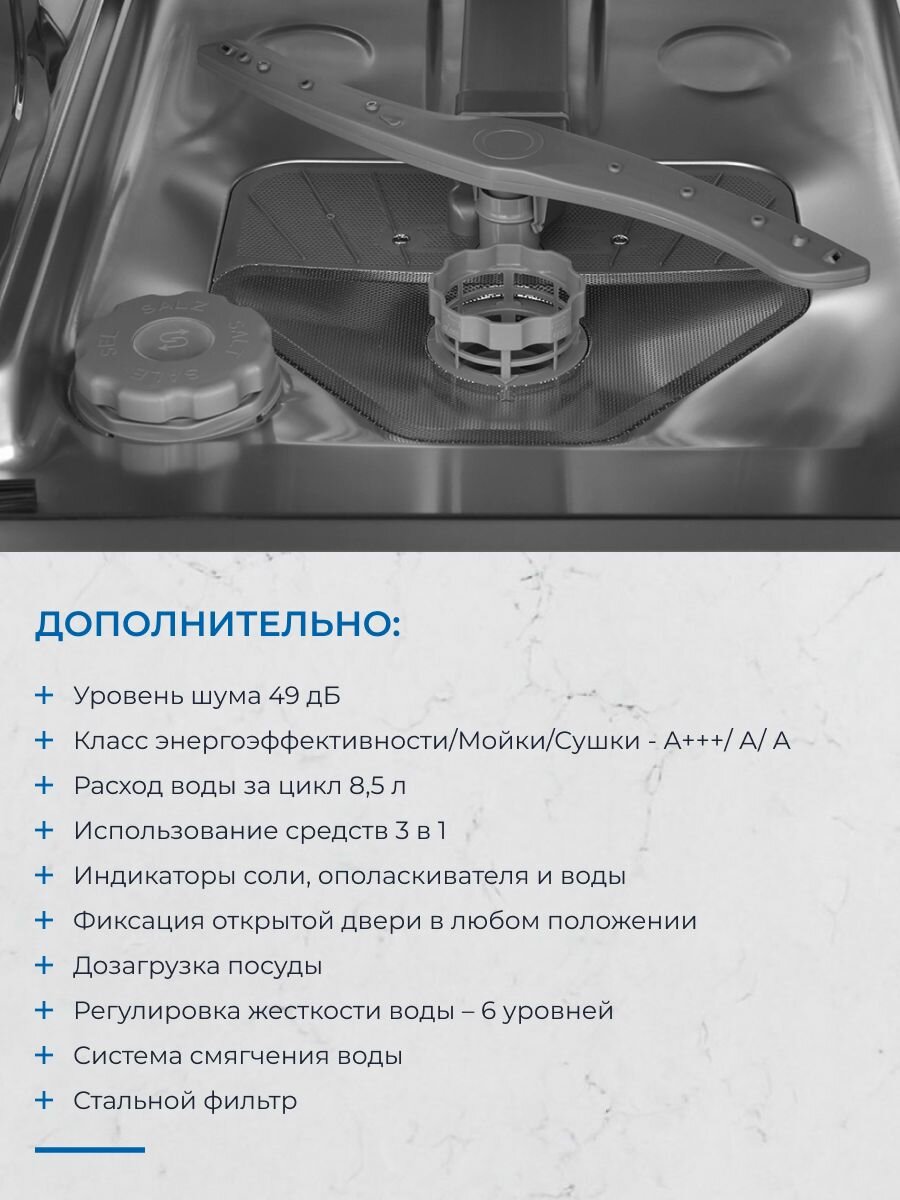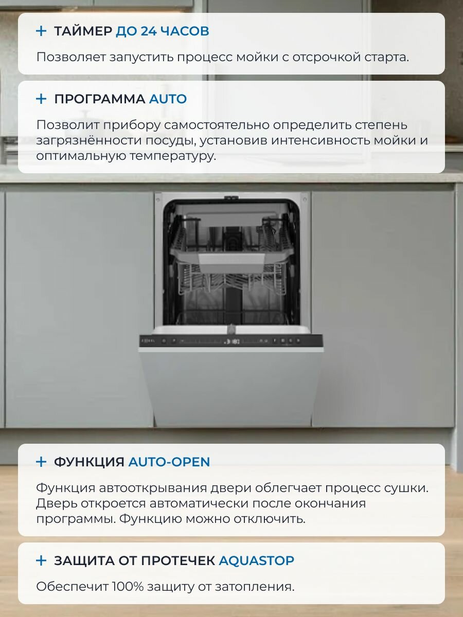 Встраиваемая посудомоечная машина ZUGEL ZDI457 Узкая 45 см, лучом на полу, авто-открыванием, 10 комплектов, 7 программ интересное: