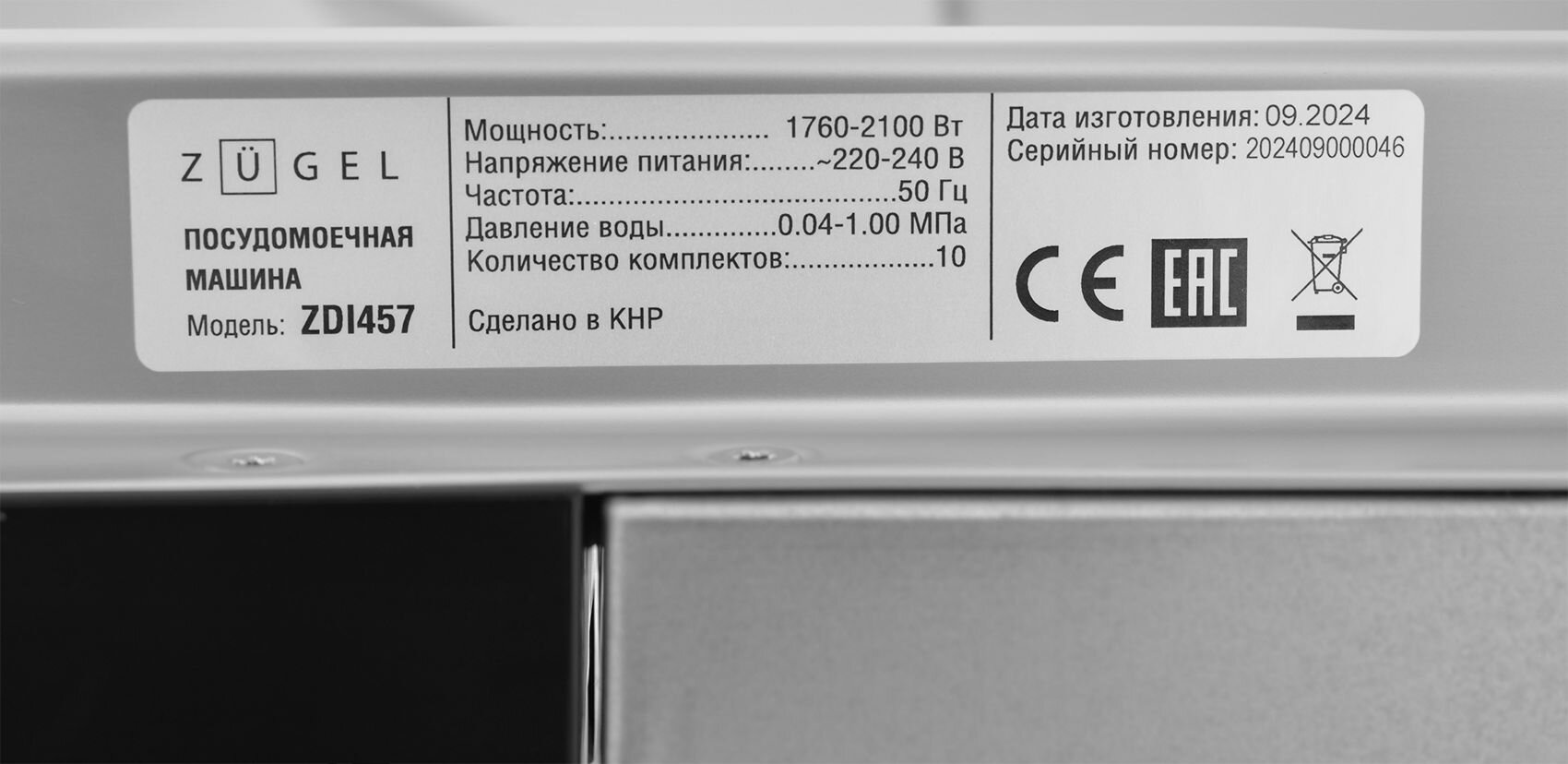 Купить Встраиваемая посудомоечная машина ZUGEL ZDI457 Узкая 45 см, лучом на полу, авто-открыванием, 10 комплектов, 7 программ