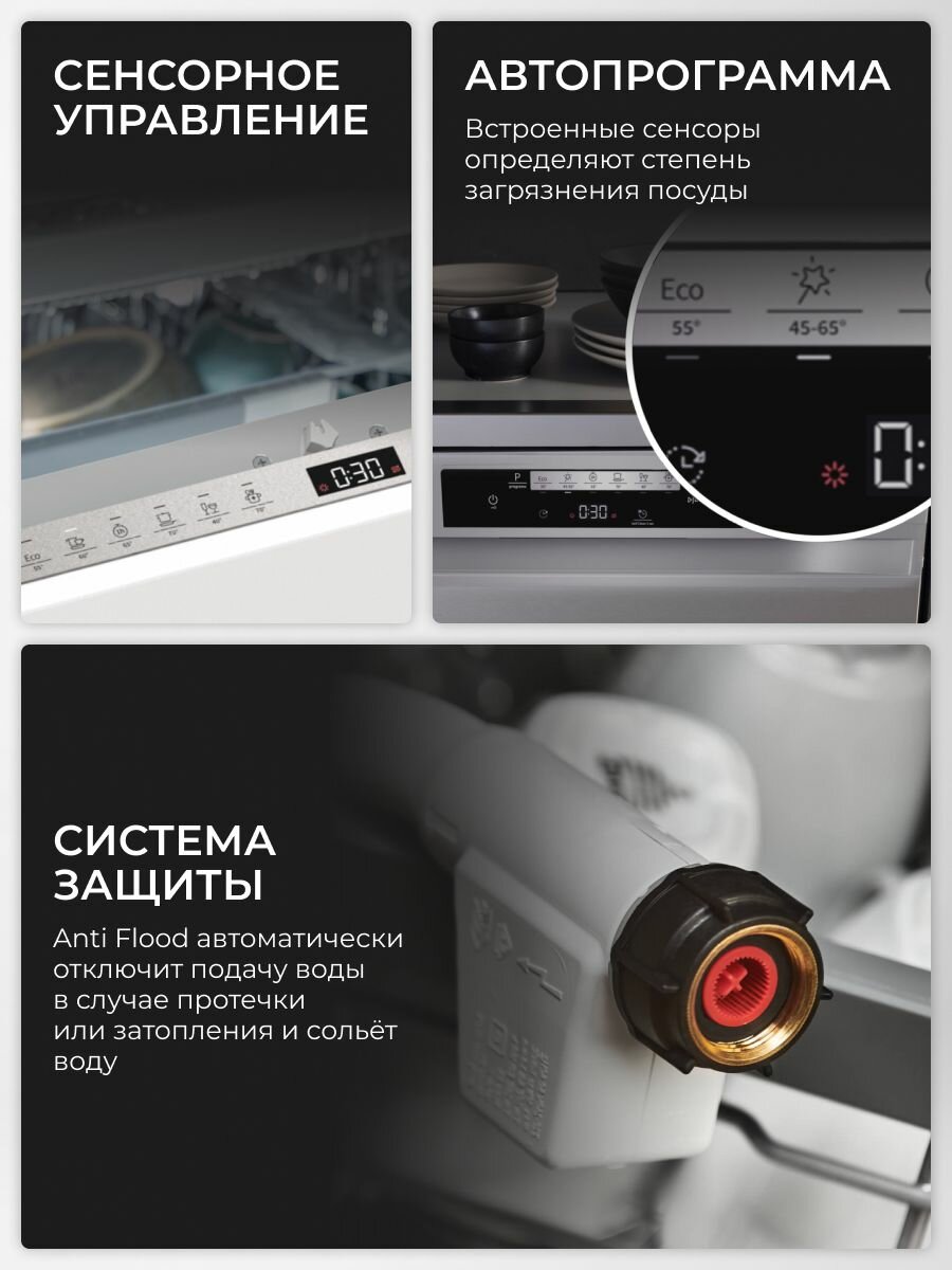 | Особенности конструкции | использование средств 3 в 1 / Автоматическое открывание двери / Звуковой сигнал / Отсрочка запуска / Самоочищающийся фильтр |