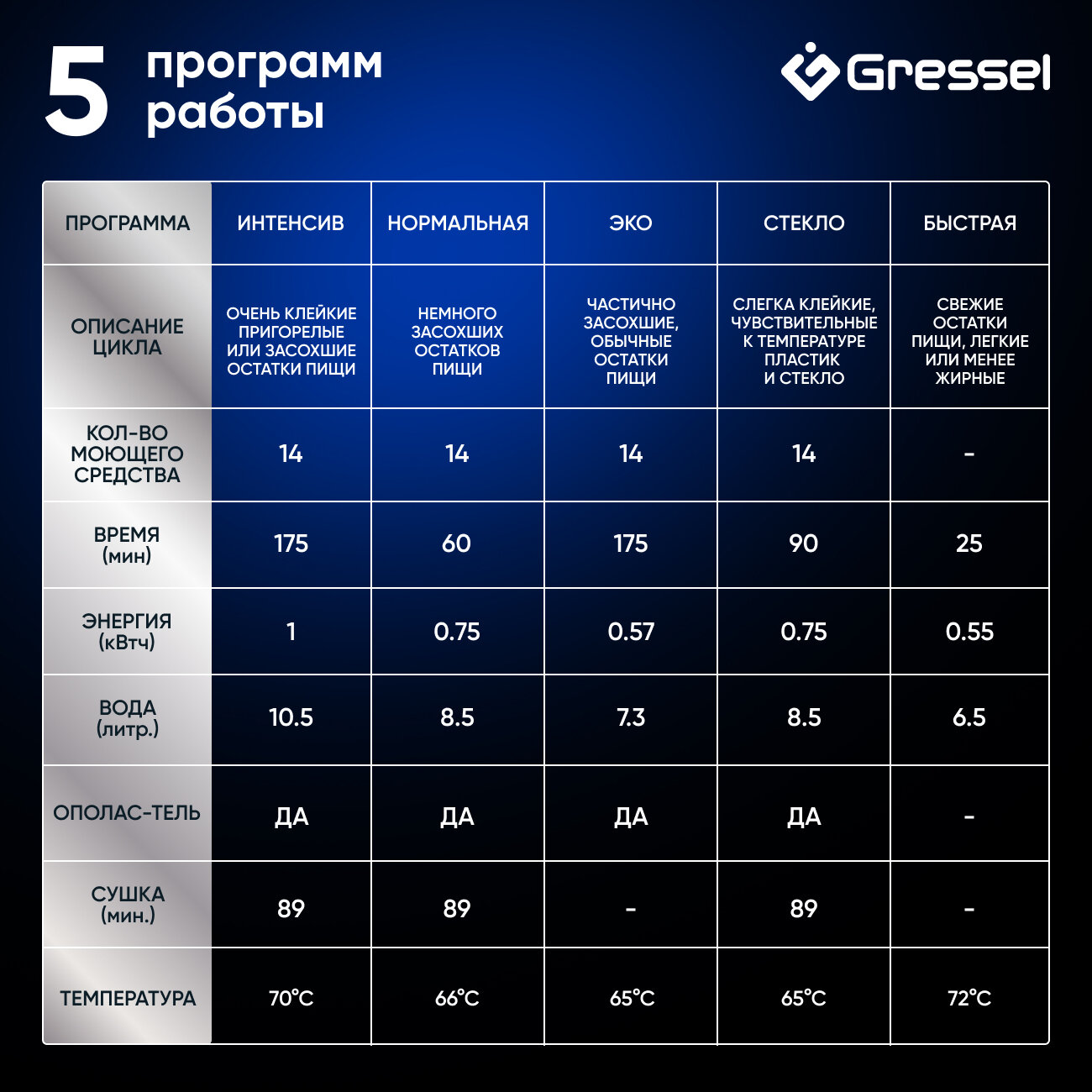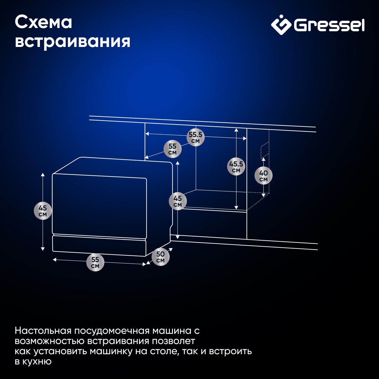 Настольная посудомоечная машина Gressel UPB550, 5 программ, 6 комплектов, 55см, черная интересное: