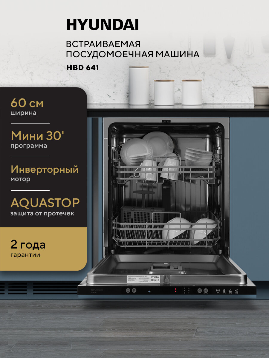 Посудомоечная машина Hyundai HBD 641 нержавеющая сталь, 13 комплектов посуды интересное: