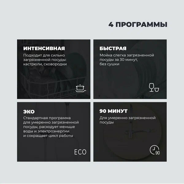 | Количество программ мойки | 4 |