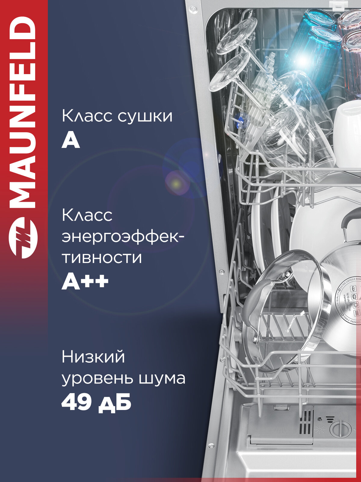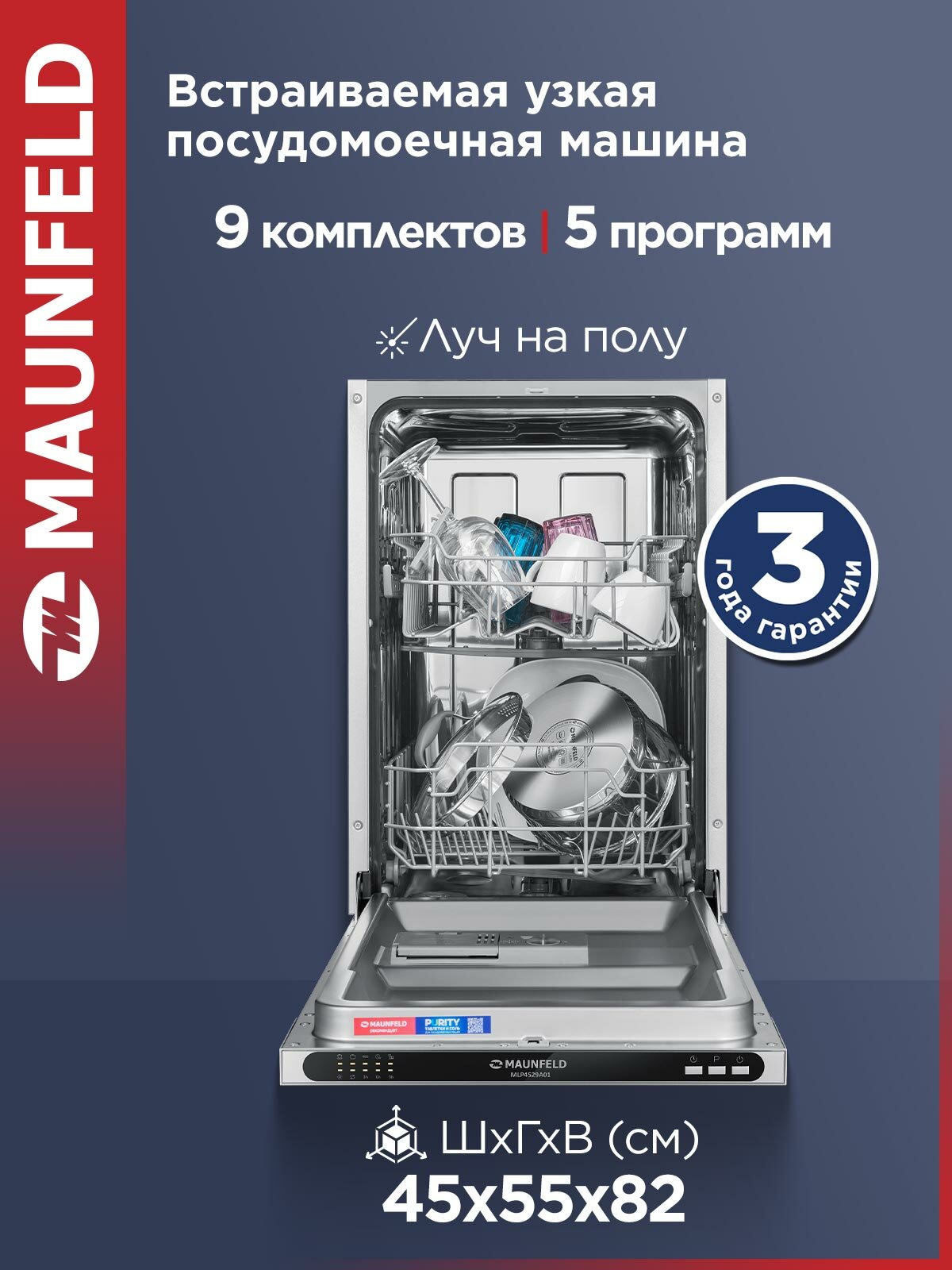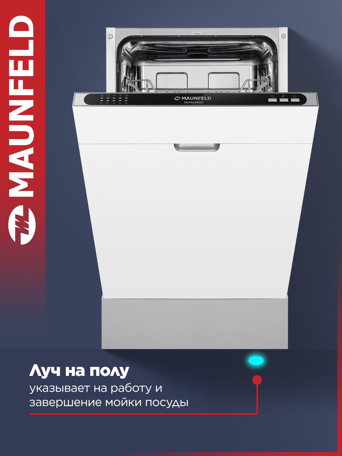 Посудомоечная машина MAUNFELD MLP4529A01 Light Beam, узкая, 9 комплектов посуды, луч на полу интересное: