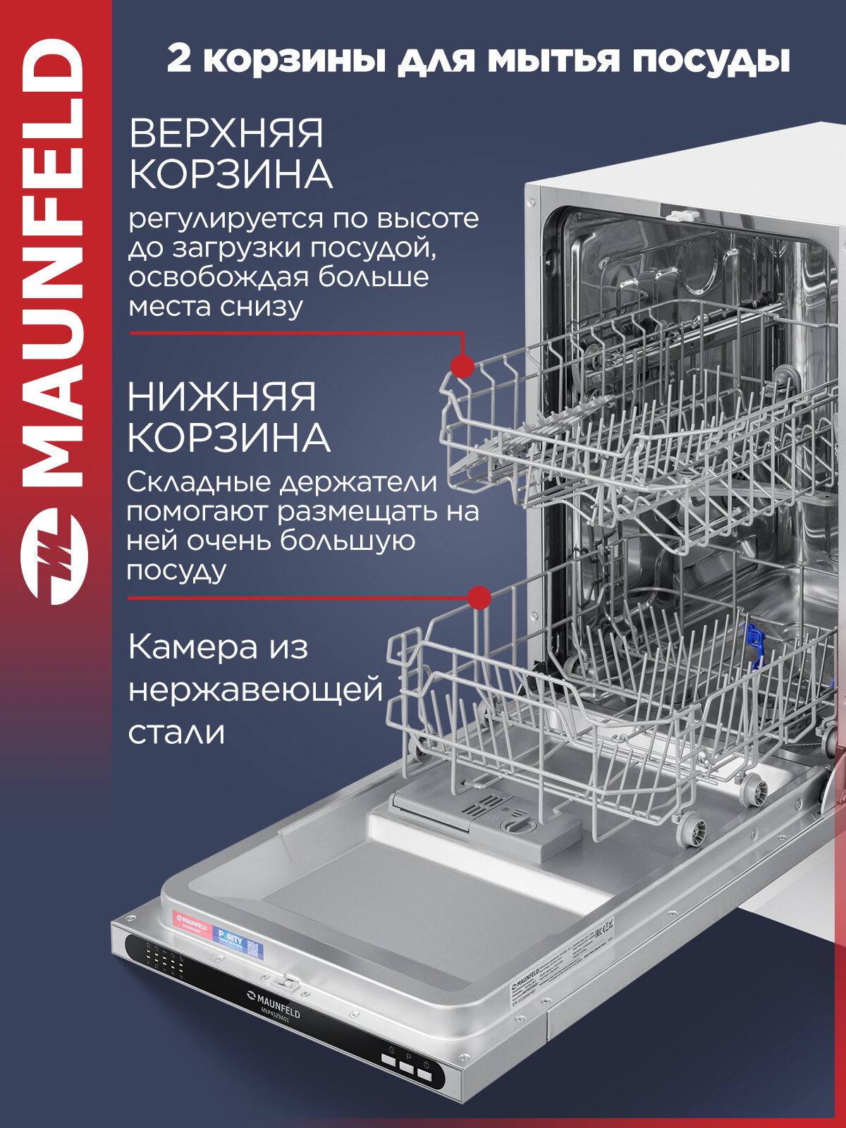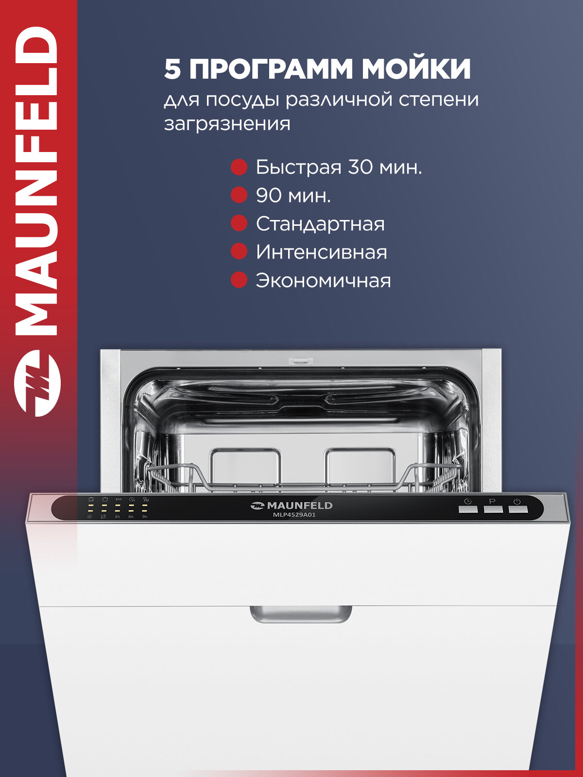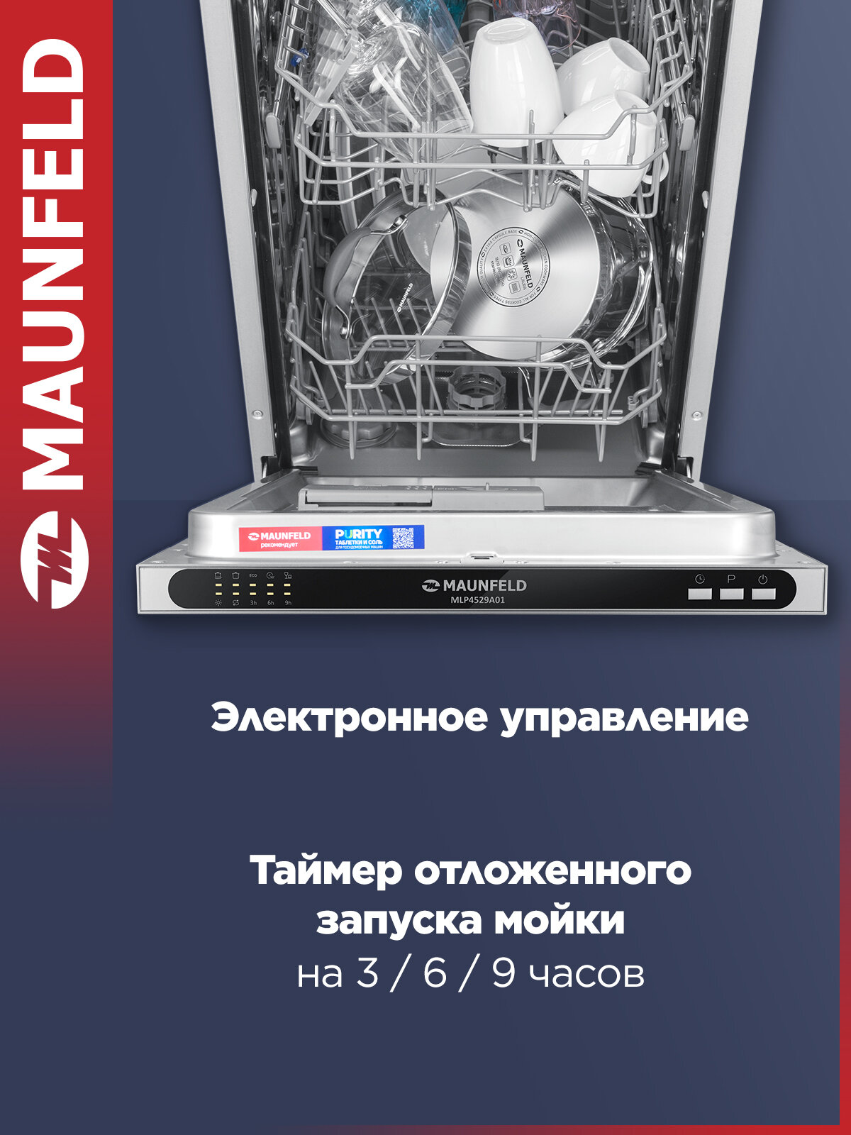 Посудомоечная машина MAUNFELD MLP4529A01 Light Beam, узкая, 9 комплектов посуды, луч на полу интересное: