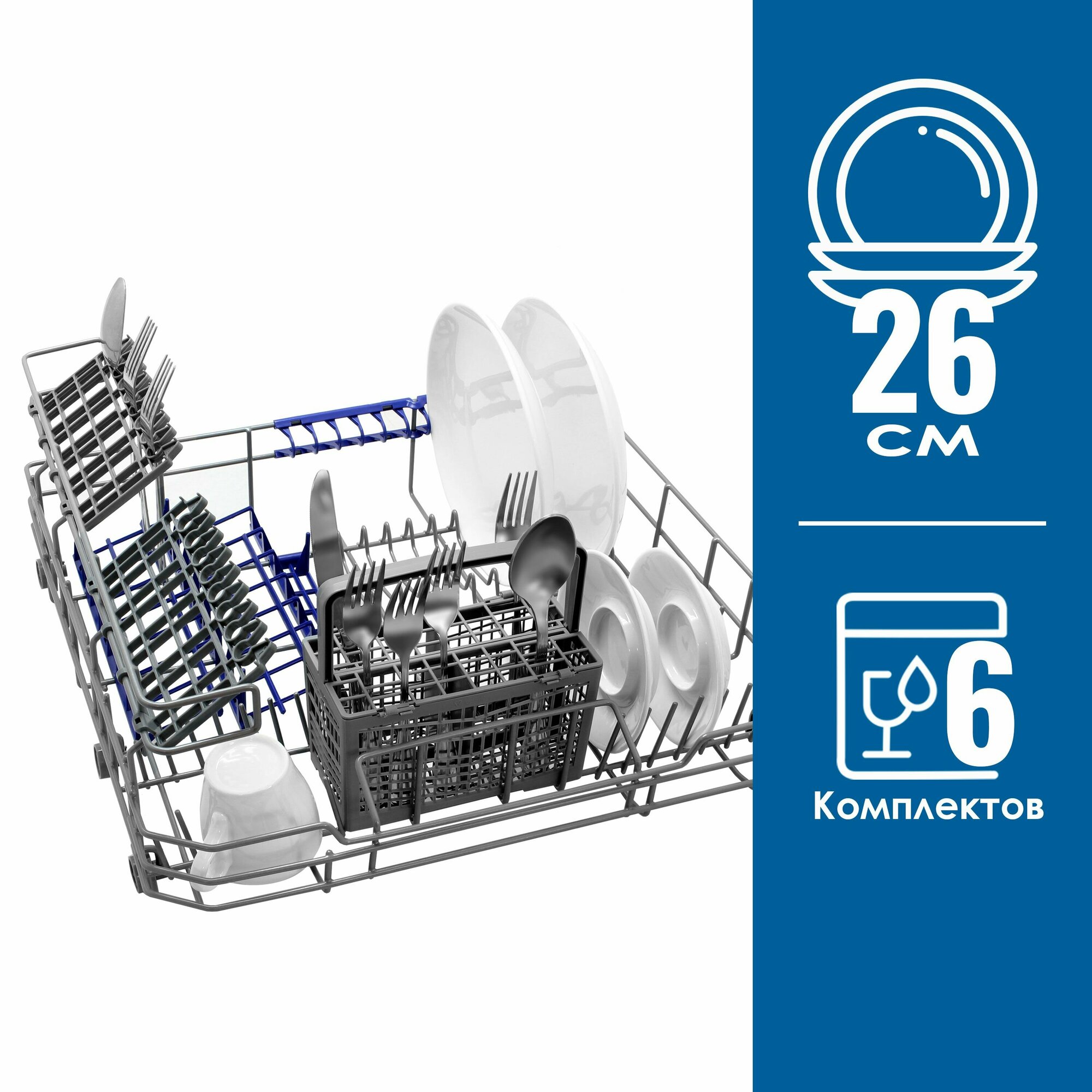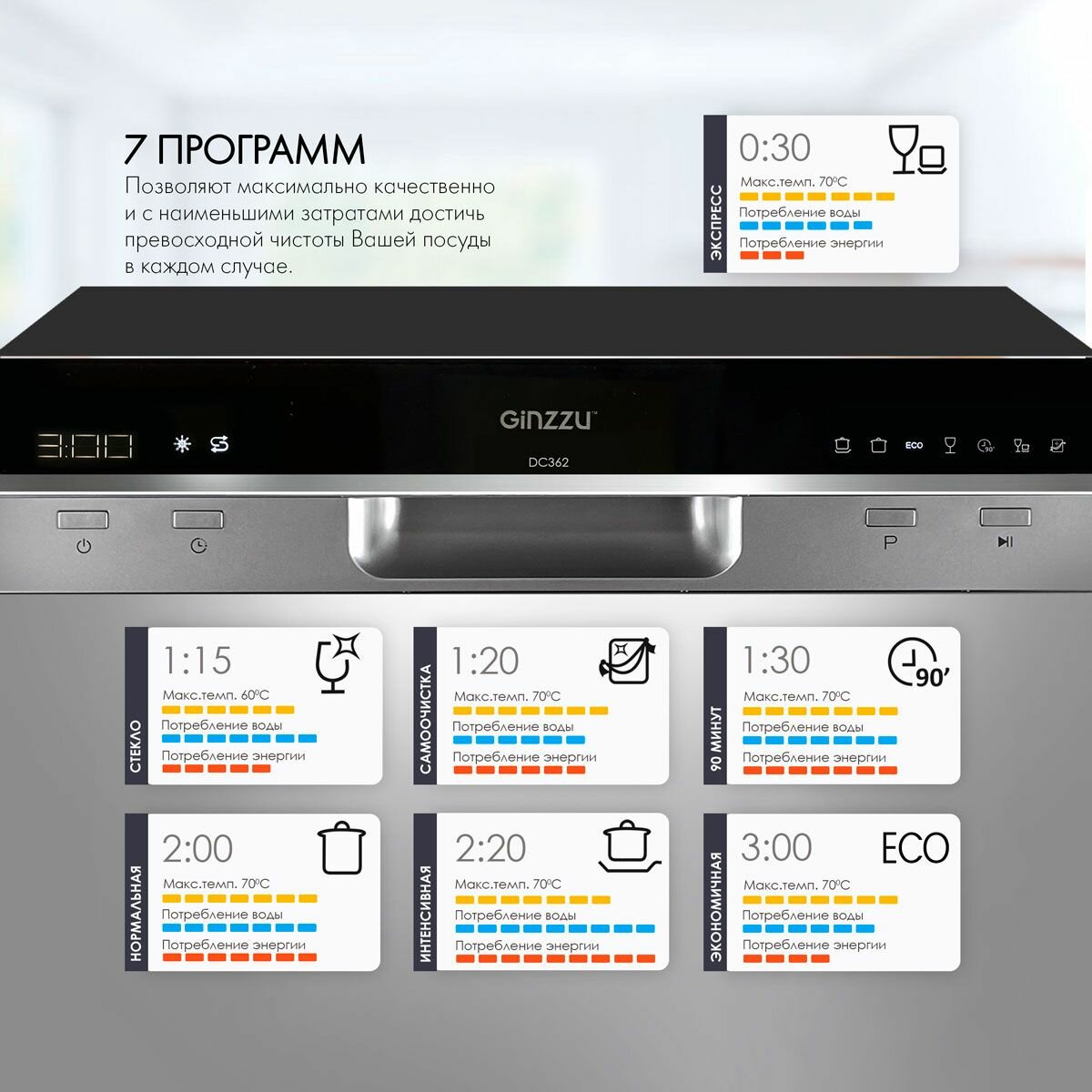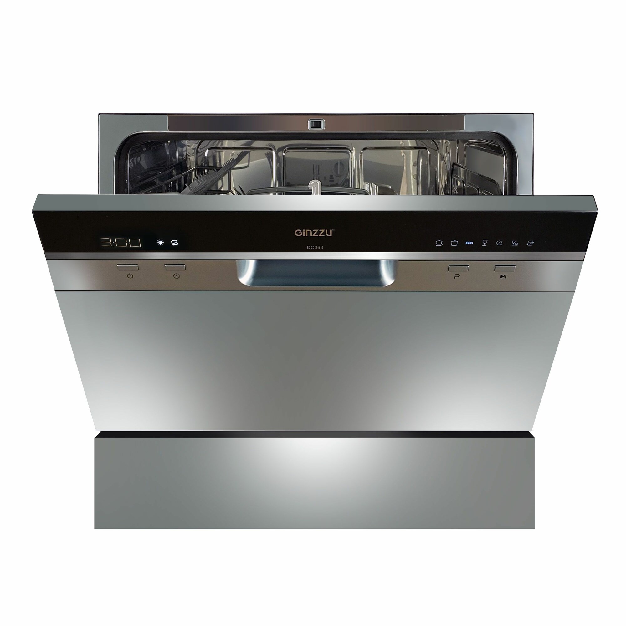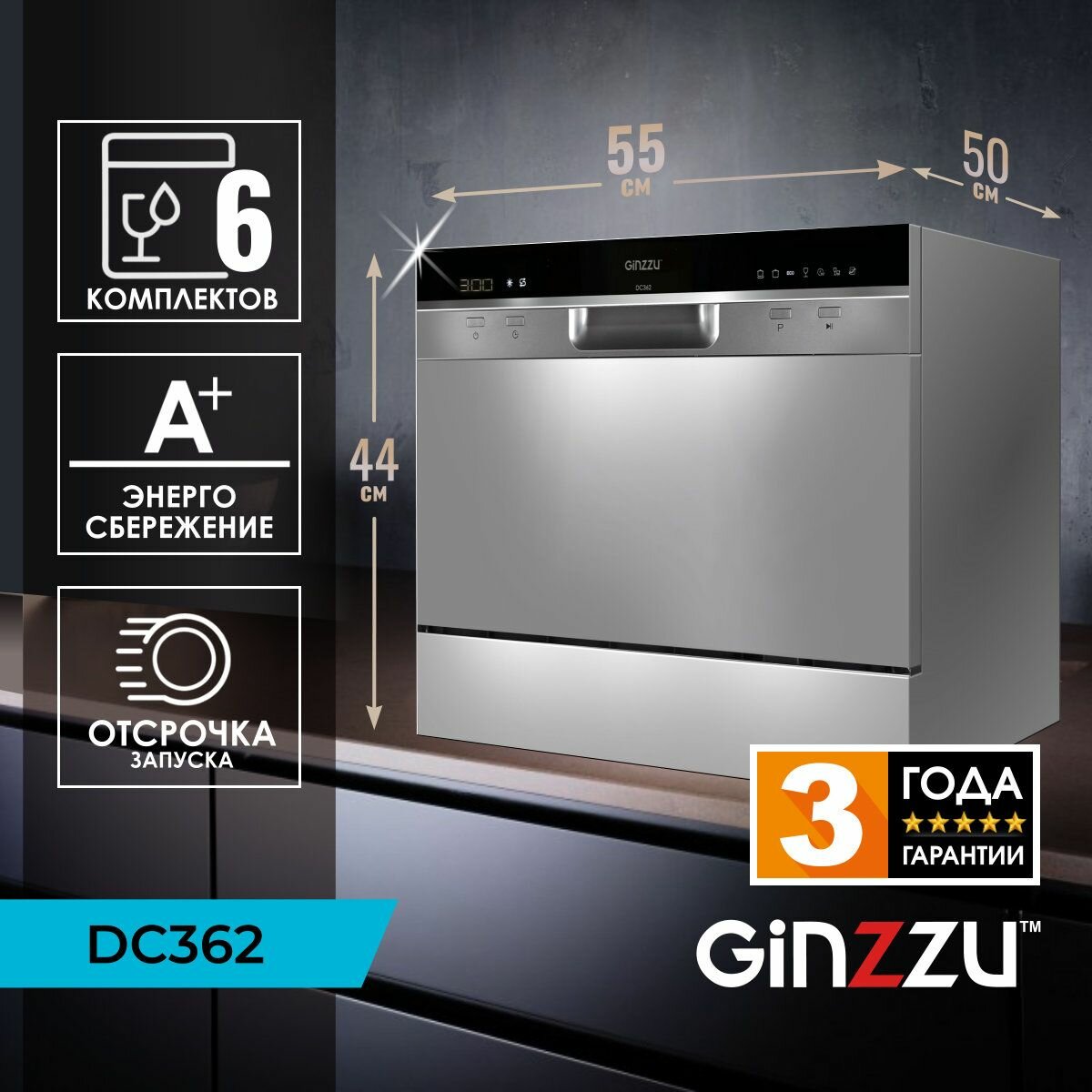 Купить Посудомоечная машина Ginzzu DC362 компактная, серебристая, 6 комплектов, средство 3в1