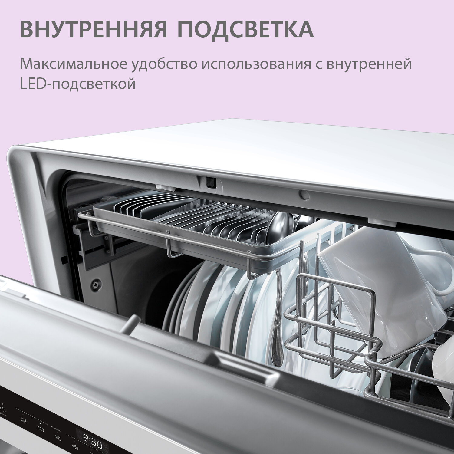 | Индикаторы наличия средств | наличия ополаскивателя, наличия соли, неисправности, ход программ |