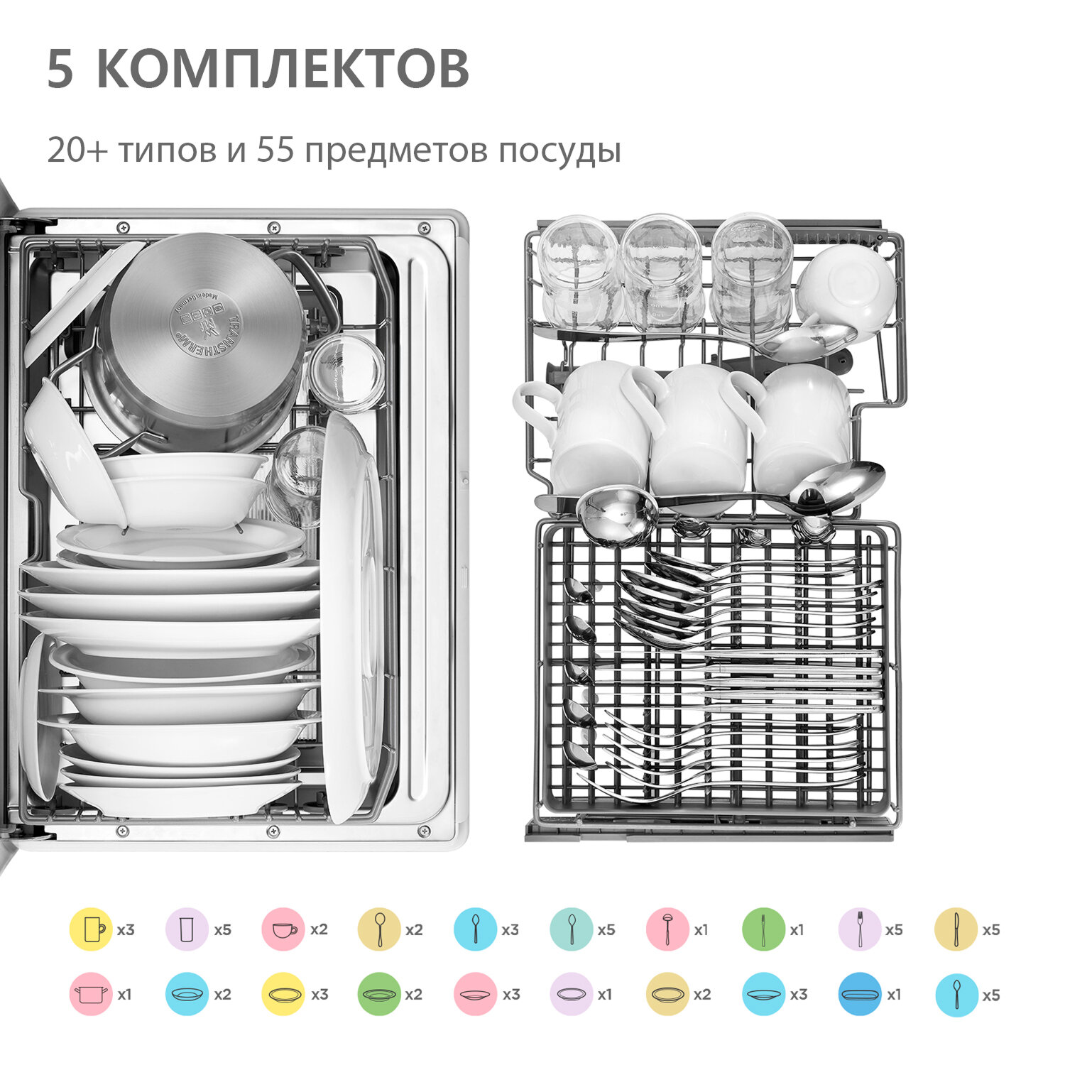 | Вместимость | 5 комплектов |