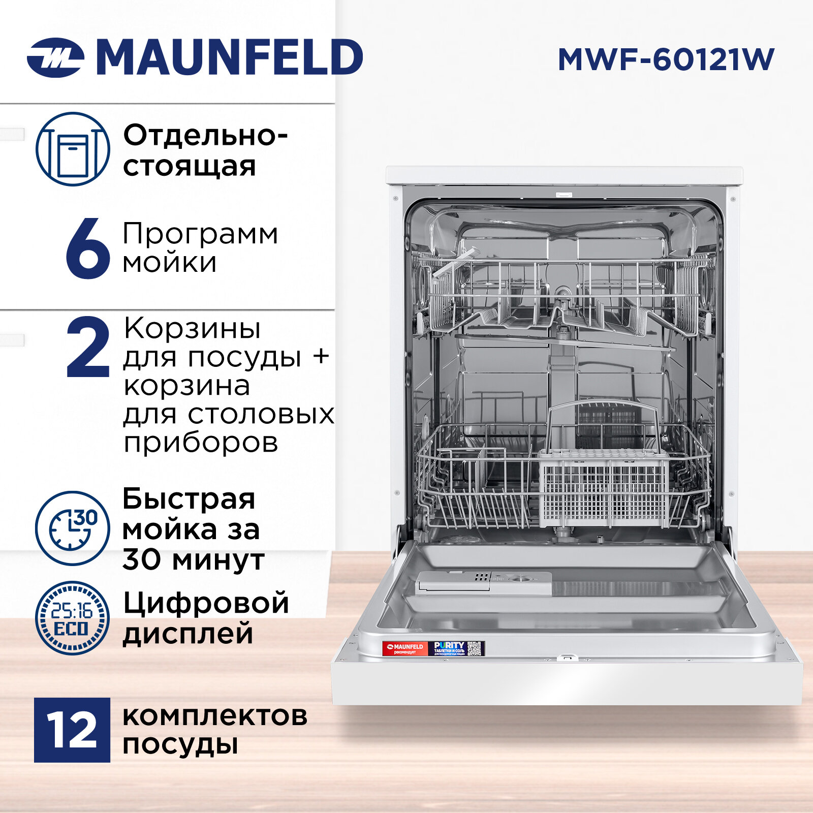 Купить Посудомоечная машина MAUNFELD MWF60121W, 12 комплектов, 6 программ мойки, конденсационная сушка