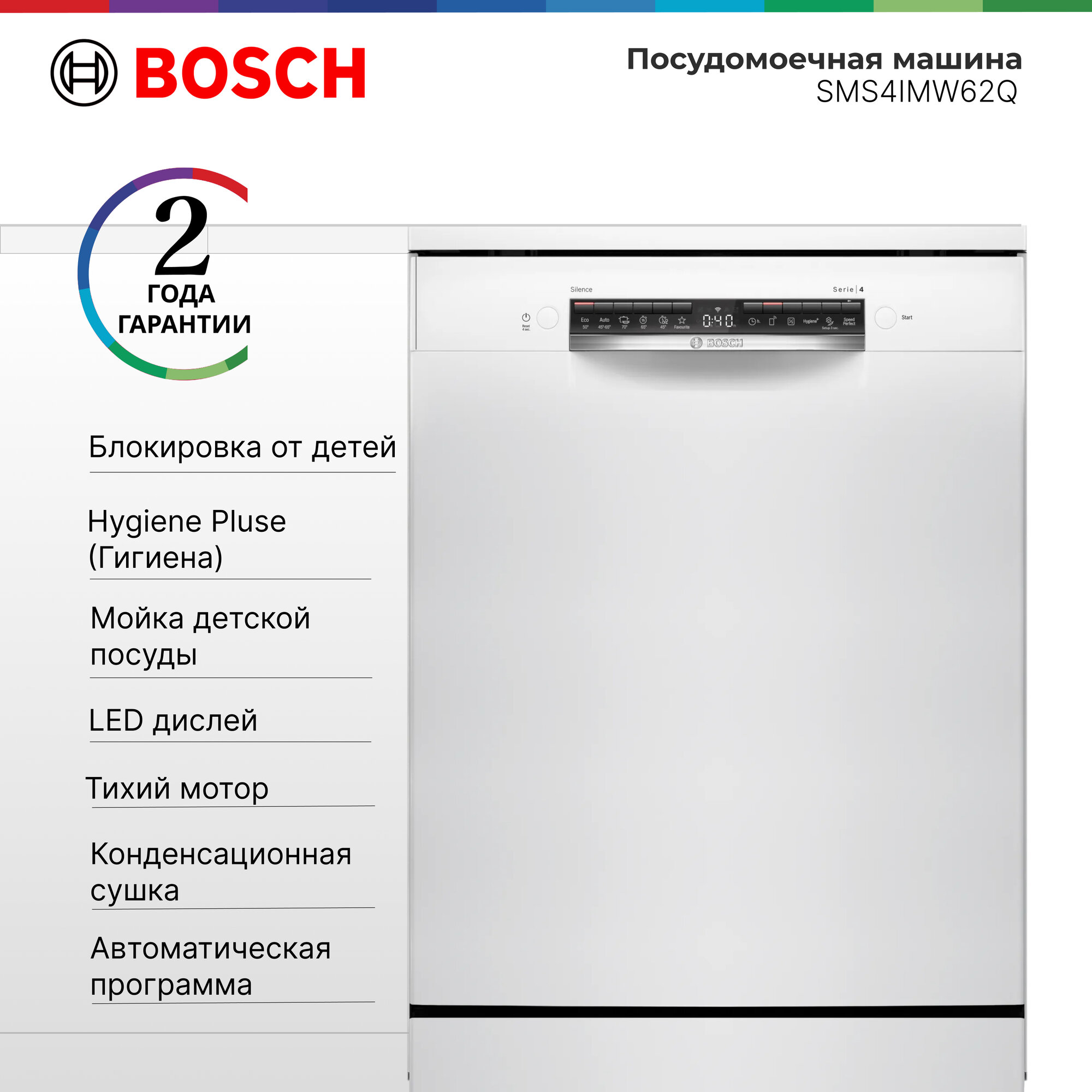 Ниже Вы можете прочитать отзывы на Посудомоечная машина BOSCH SMS4IMW62Q, полноразмерная, 14 комплектов, 6 программ, защита от протечек, белая, ознакомится с подробными характеристиками, посмотреть интересные обзоры и фотографии на Посудомоечная машина BOSCH SMS4IMW62Q, полноразмерная, 14 комплектов, 6 программ, защита от протечек, белая.