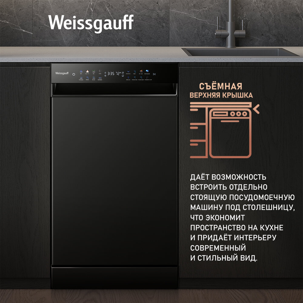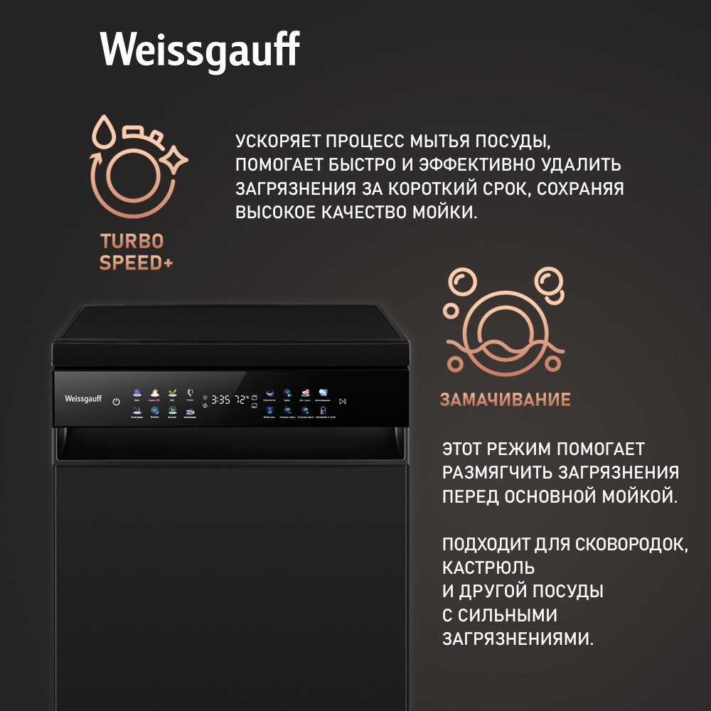Купить Посудомоечная машина c авто-открыванием и инвертором Weissgauff DW 4539 Inverter Touch AutoOpen Black