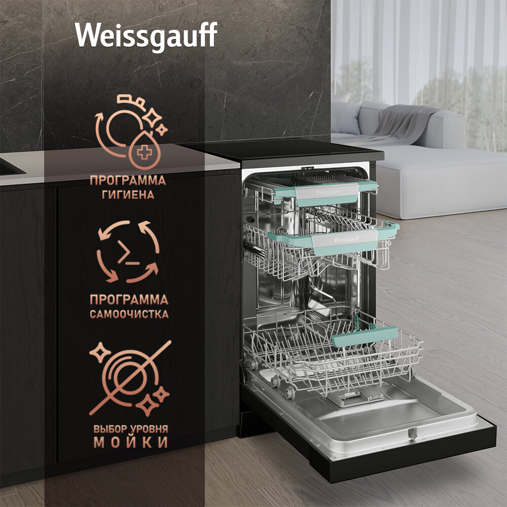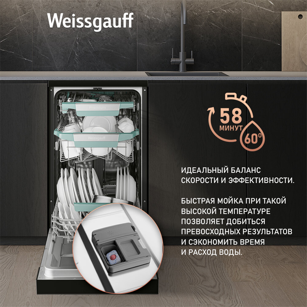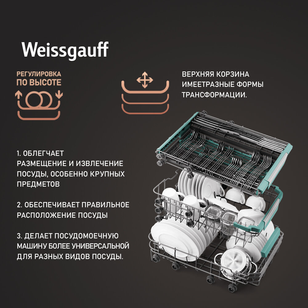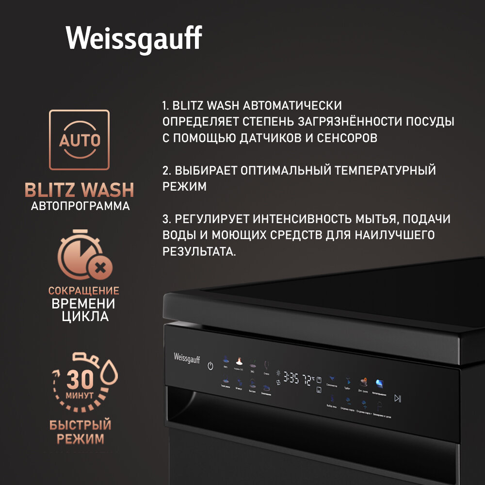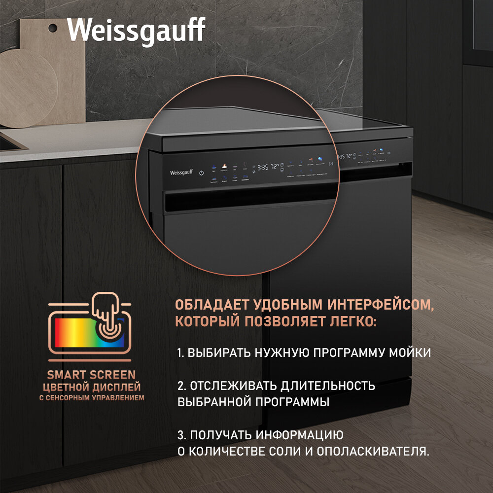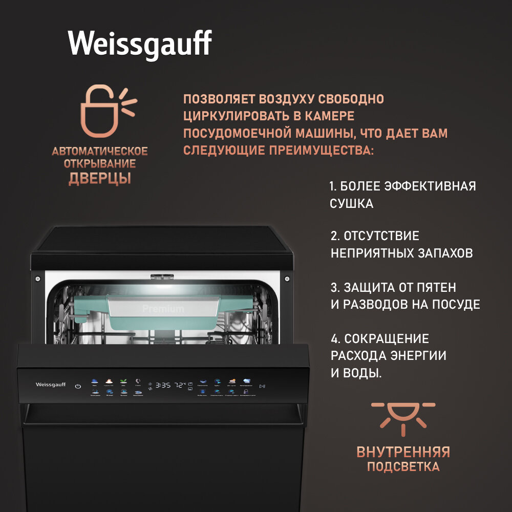 Посудомоечная машина c авто-открыванием и инвертором Weissgauff DW 4539 Inverter Touch AutoOpen Black интересное: