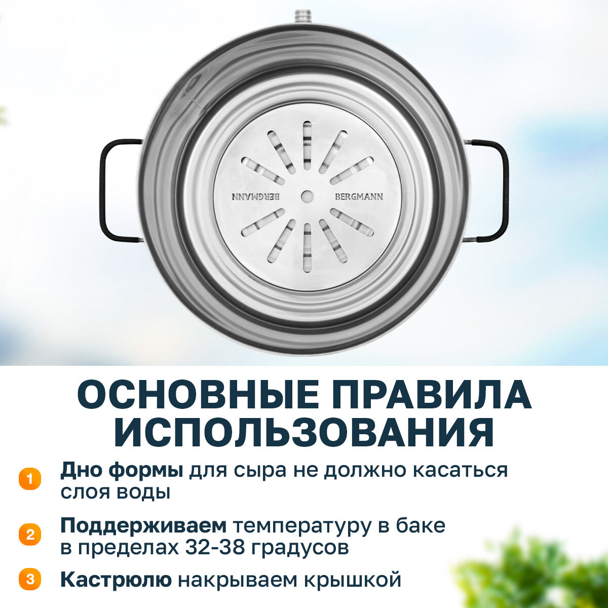 Фальшдно для сыроварни Bergmann, универсальная, нержавеющая сталь, 24 см интересное: