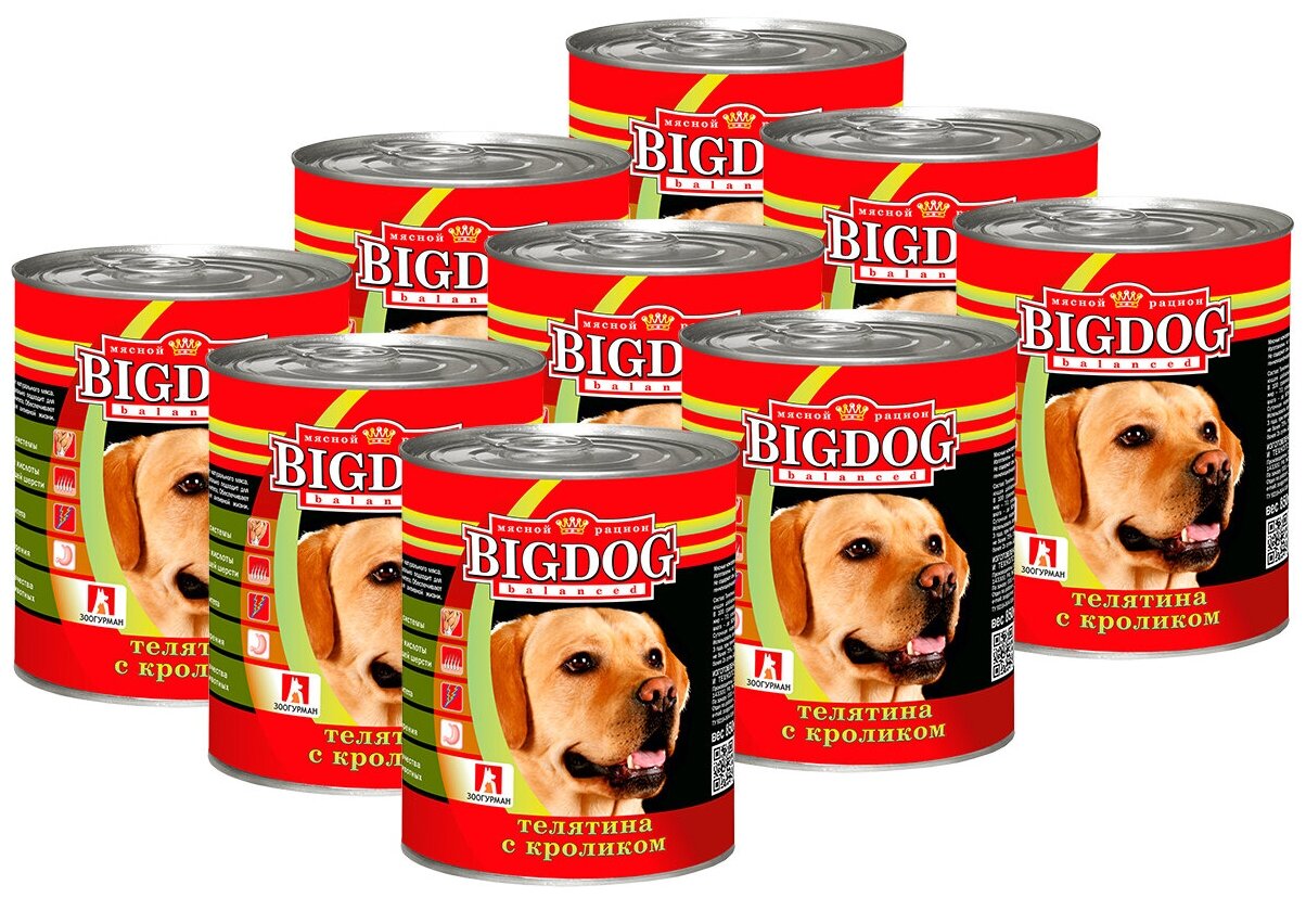 Корм Зоогурман Big Dog (консерв.) для собак, телятина с кроликом, 850 г x 9 шт