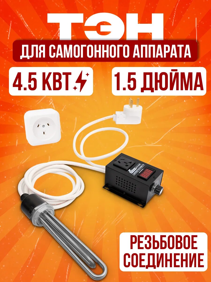 Купить ТЭН Helicon, для самогонного аппарата, 4,5 кВт, с блоком управления, резьбовое соединение 1,5 дюйма, 220В