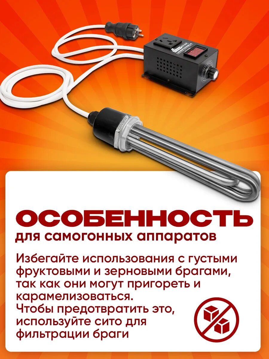 ТЭН Helicon, для самогонного аппарата, 4,5 кВт, с блоком управления, резьбовое соединение 1,5 дюйма, 220В
