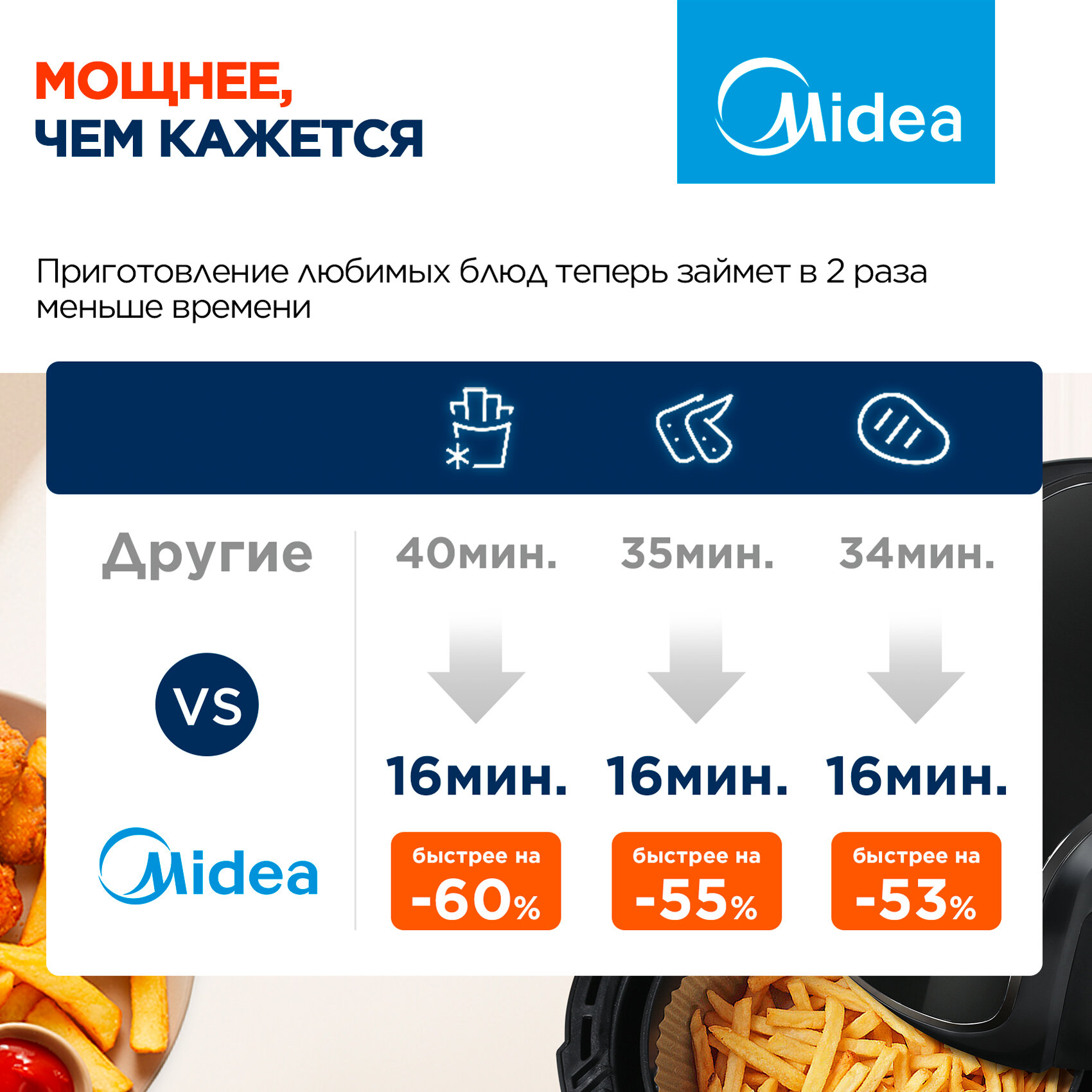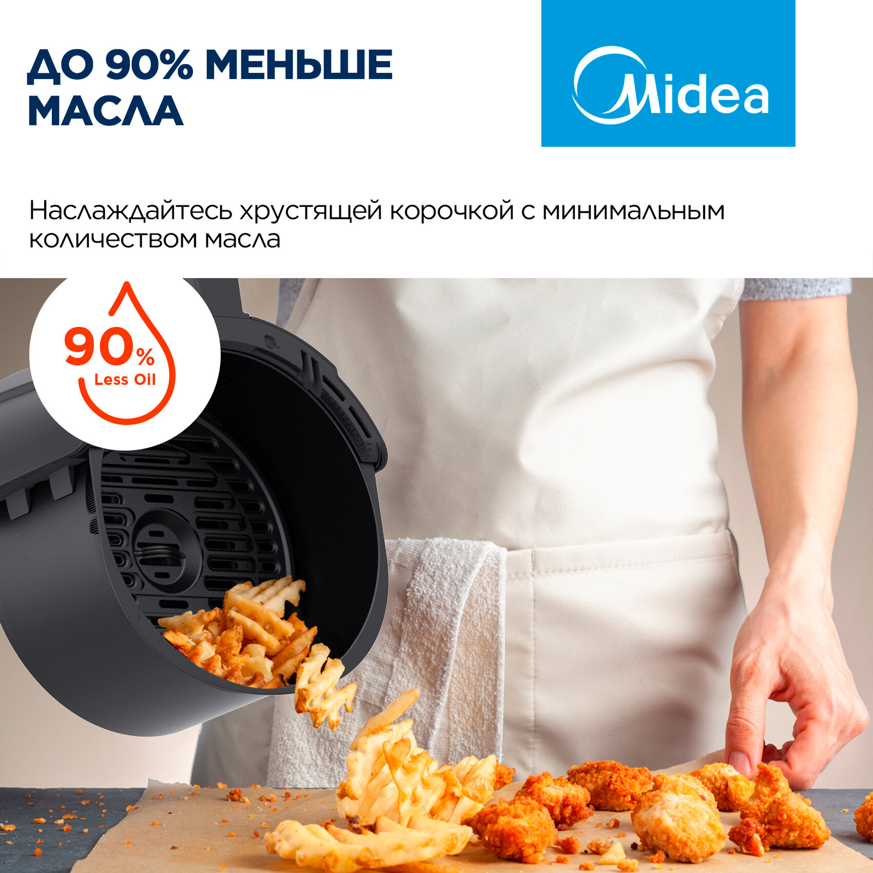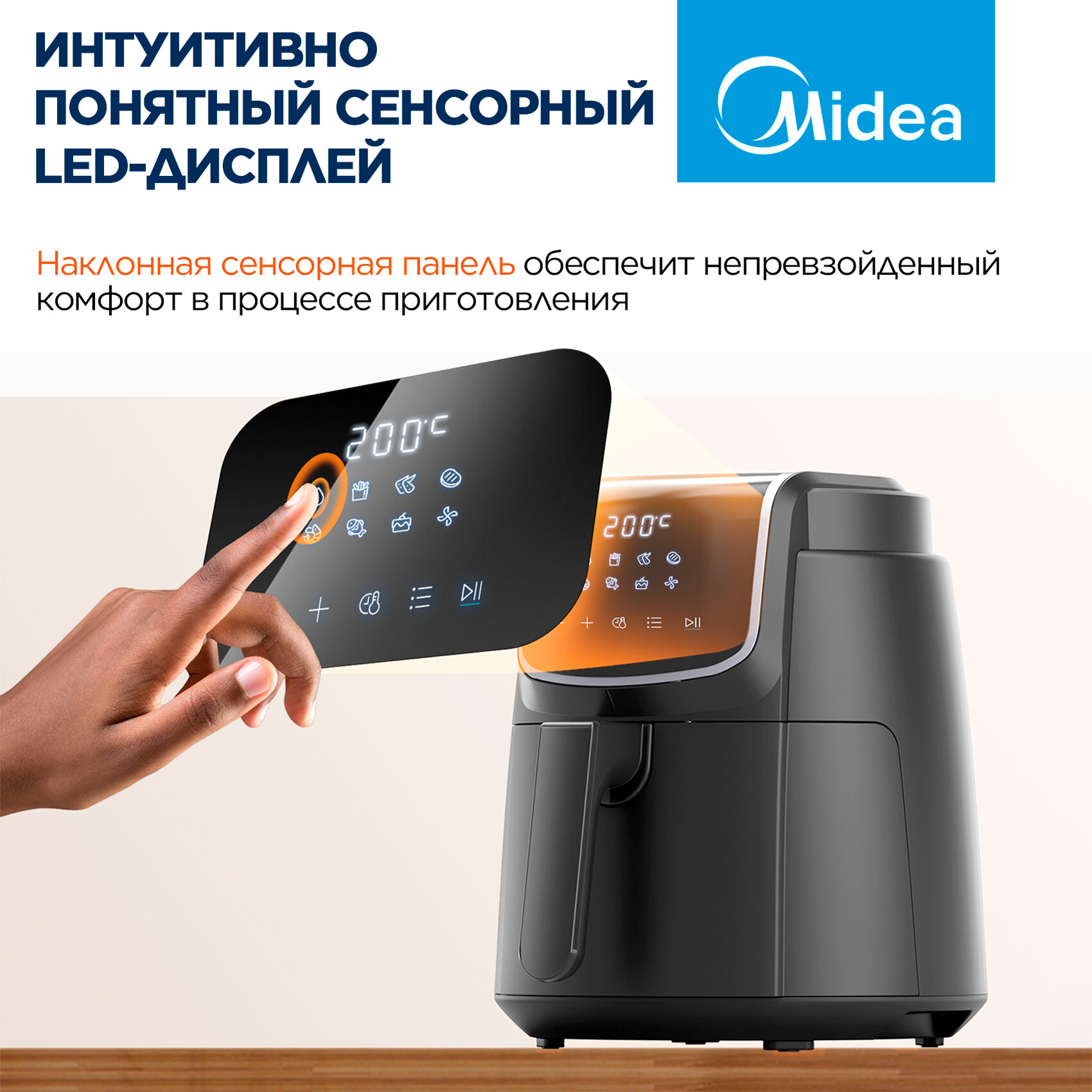 Аэрогриль Midea MAF-1040, 1500 Вт, 4 литра, сенсорное управление, 8 автоматических программ, черный интересное: