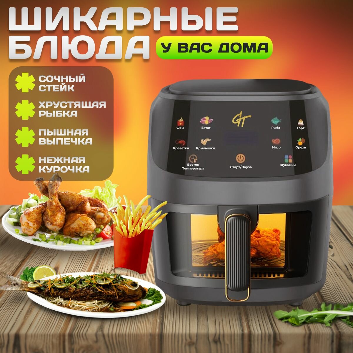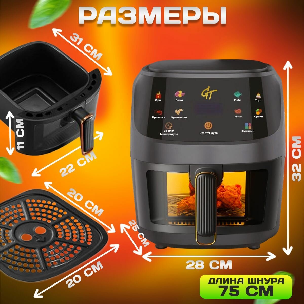Аэрогриль электрический Galaopt Team, 1350 Вт, объем чаши 6л, с таймером интересное: