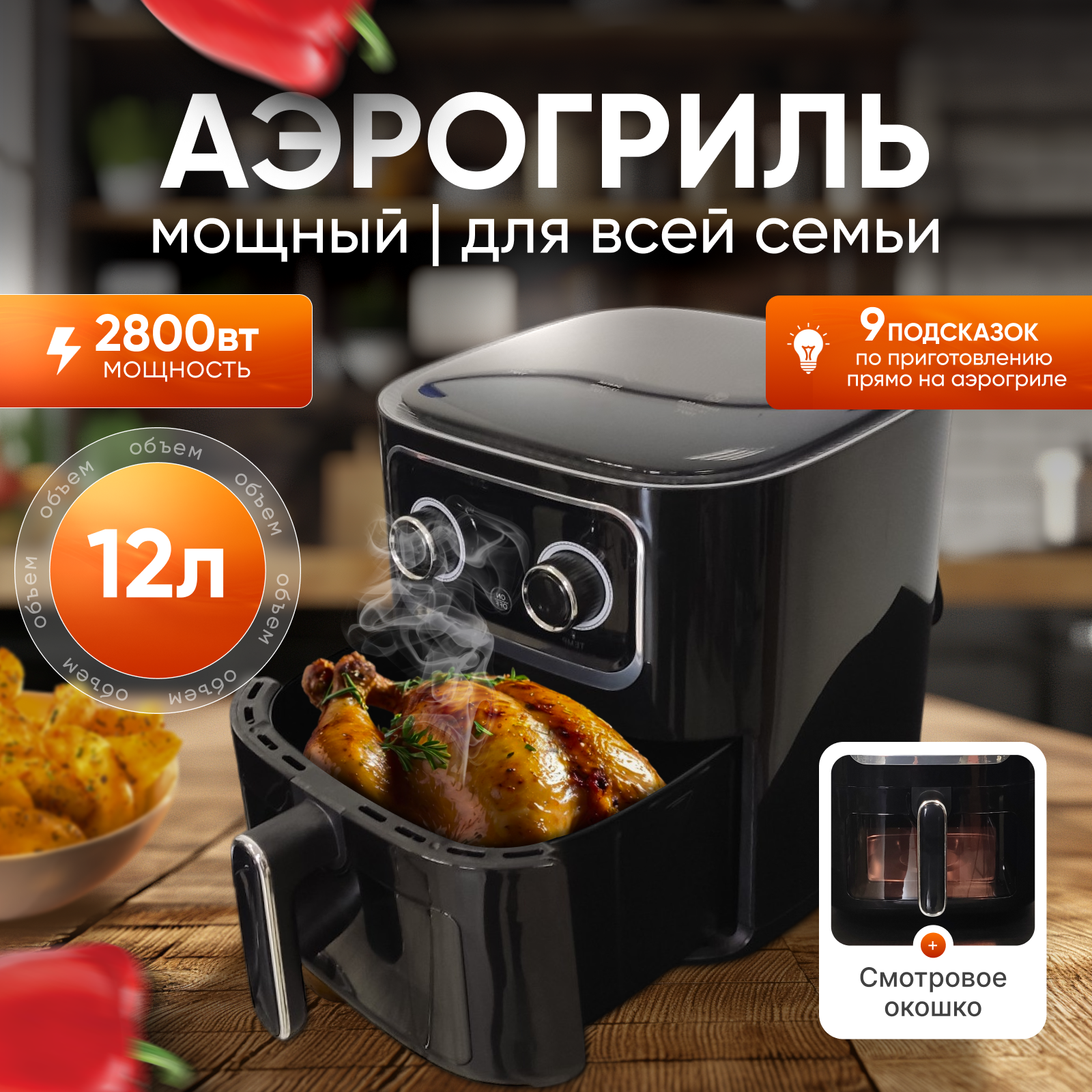 СохранитьАэрогриль электрический TIFFANY TF-162, 12 литров, мощность 2800 Вт, для дома, удобно брать на дачу, черный интересное: