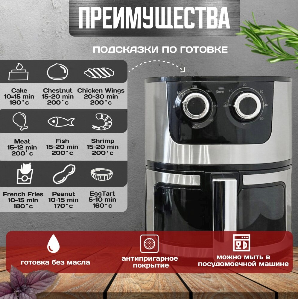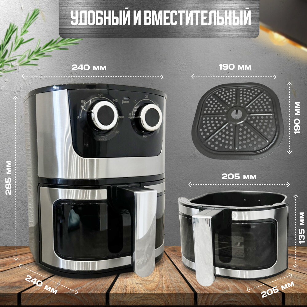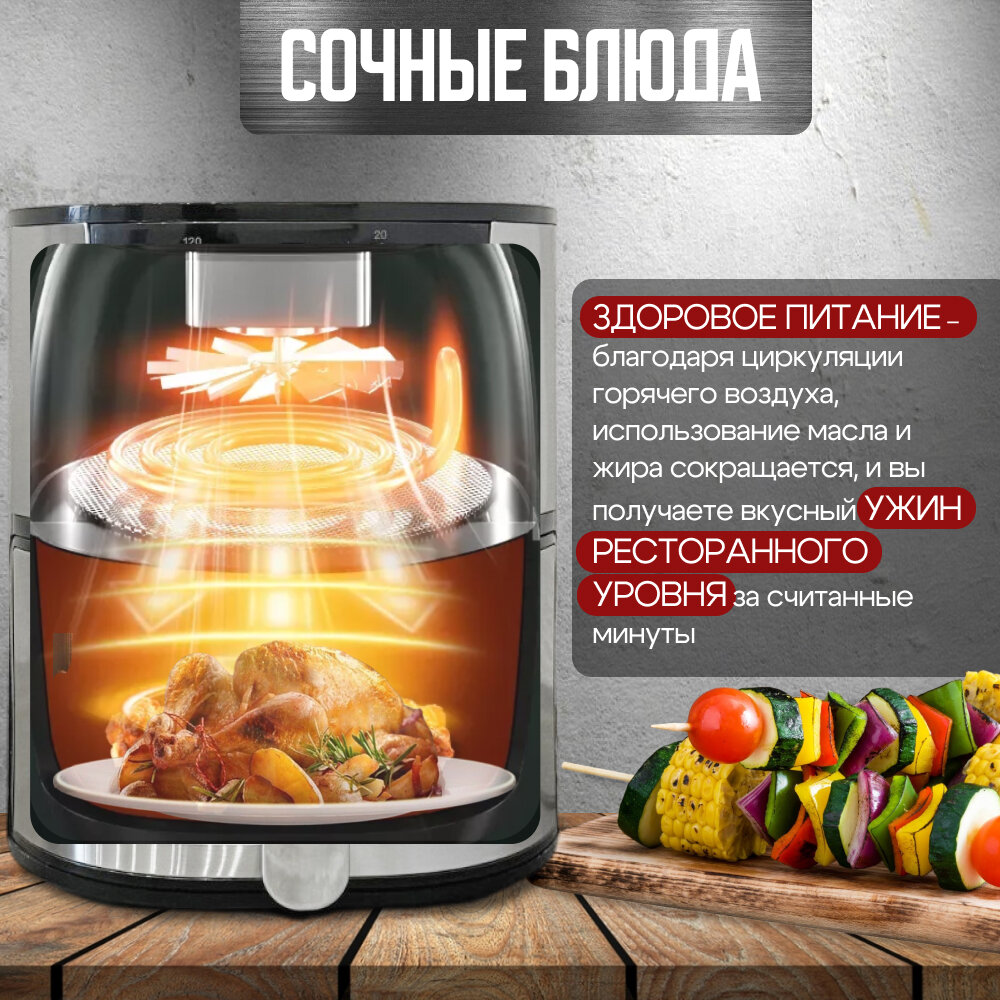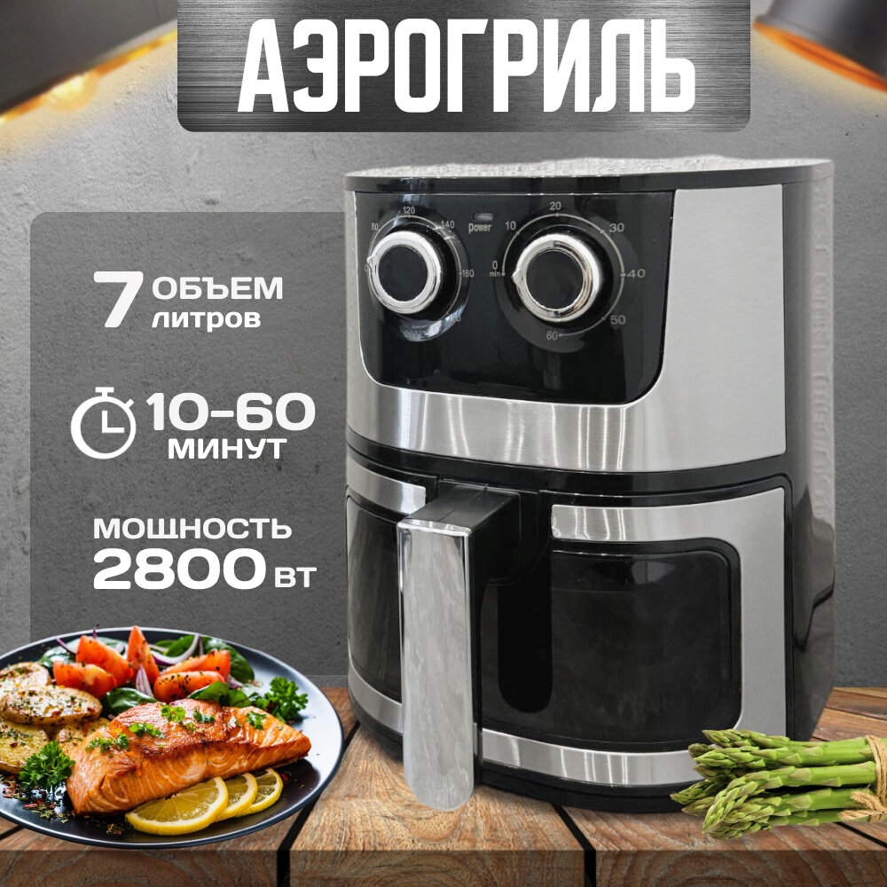 Купить Аэрогриль TIFFANY TF-165, 7 литров, 2800 Вт, готовка без масла, для дома, удобно брать на дачу, серебристо-черный