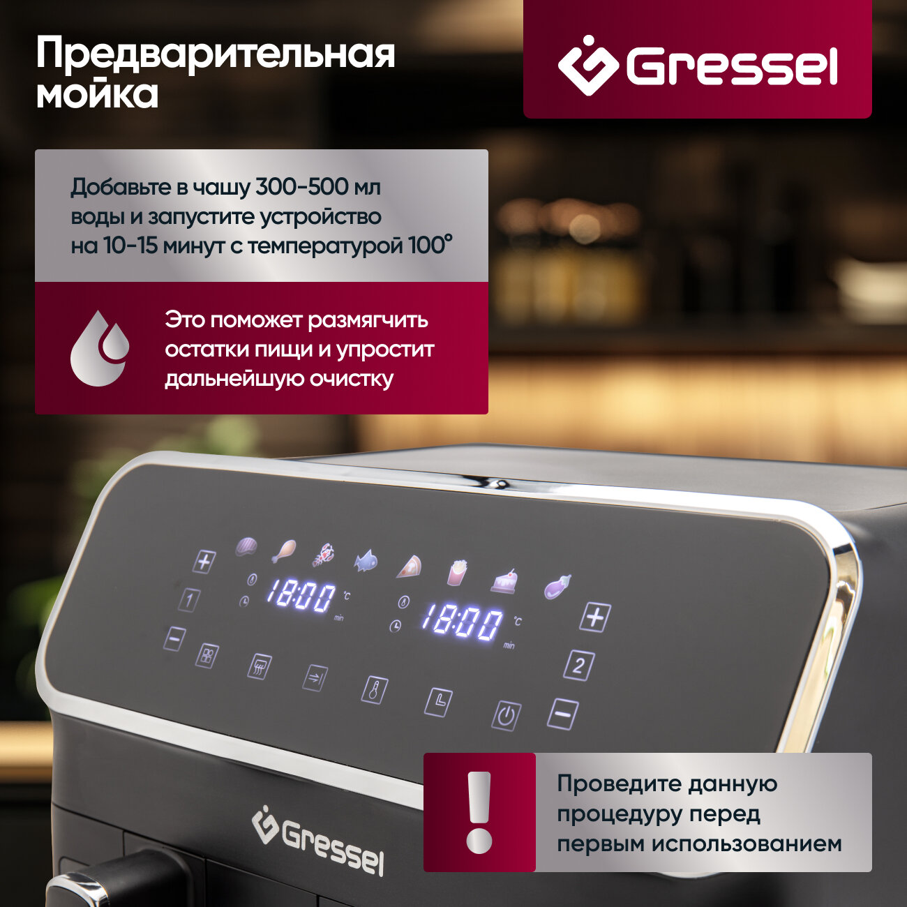 Аэрогриль Gressel GAF-1825, 2700Вт, объём чаши 4+4 литра, антипригарное покрытие интересное: