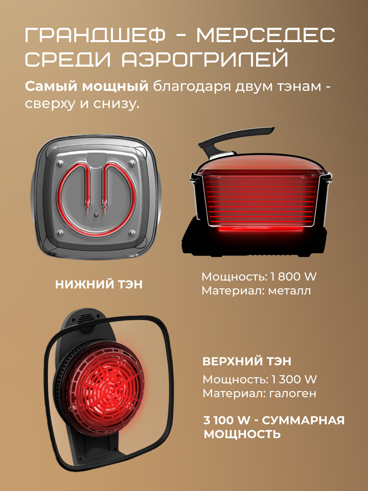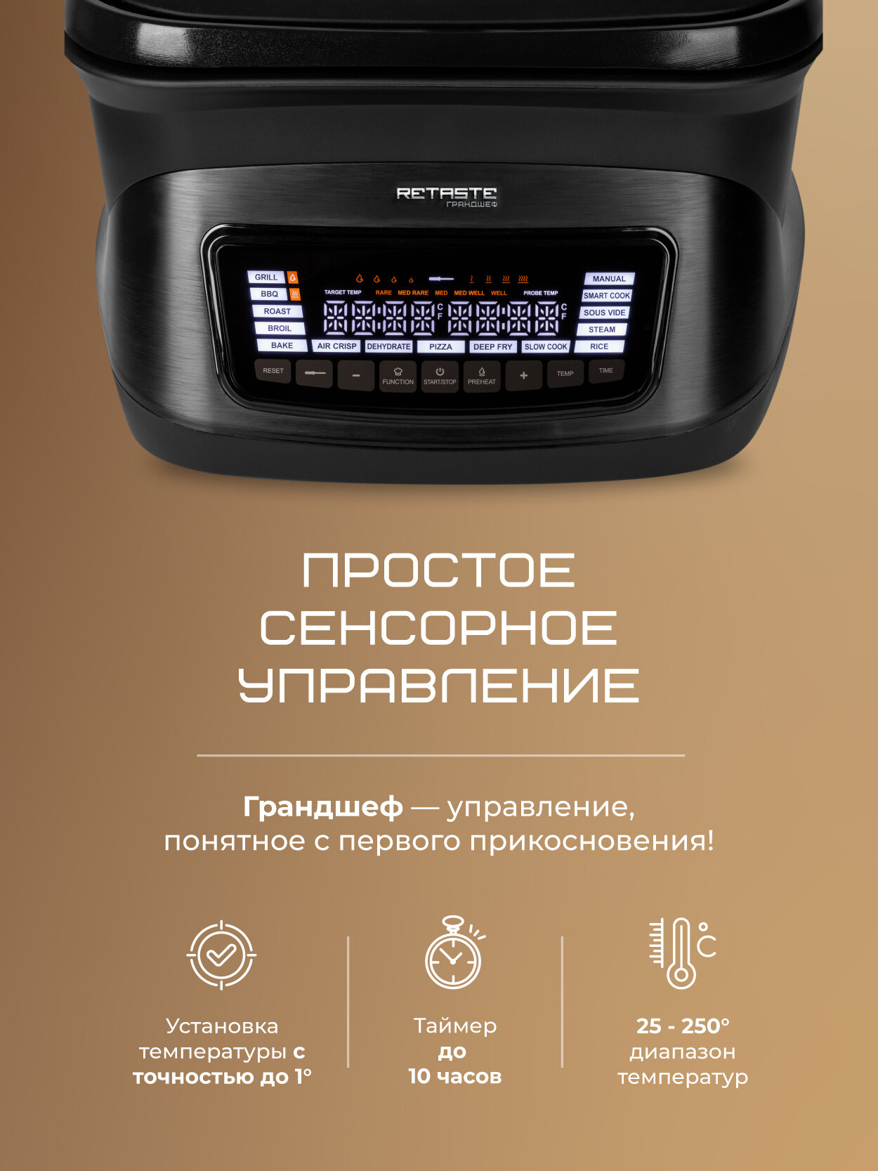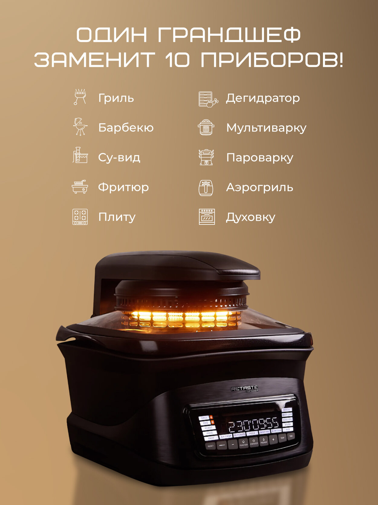 Аэрогриль , гриль RETASTE "Грандшеф", 8л, 3100Вт, электронное управление, 14 программ интересное: