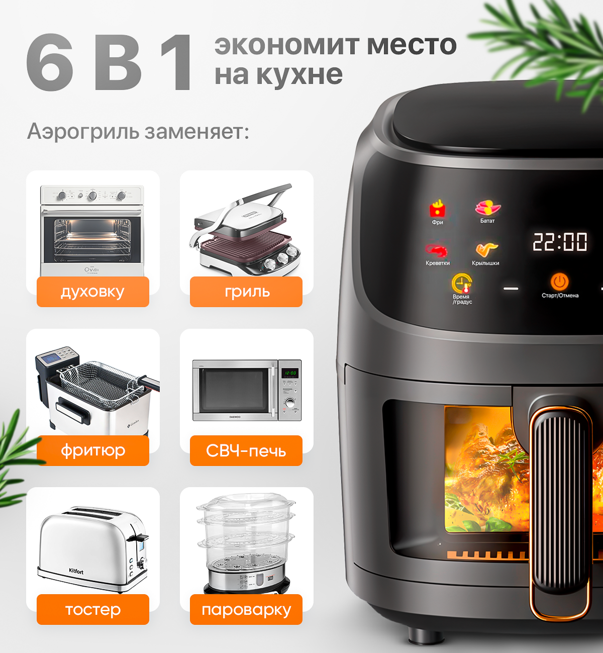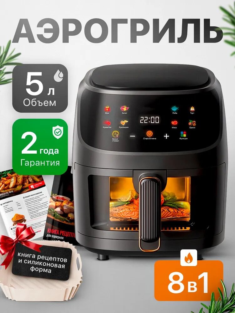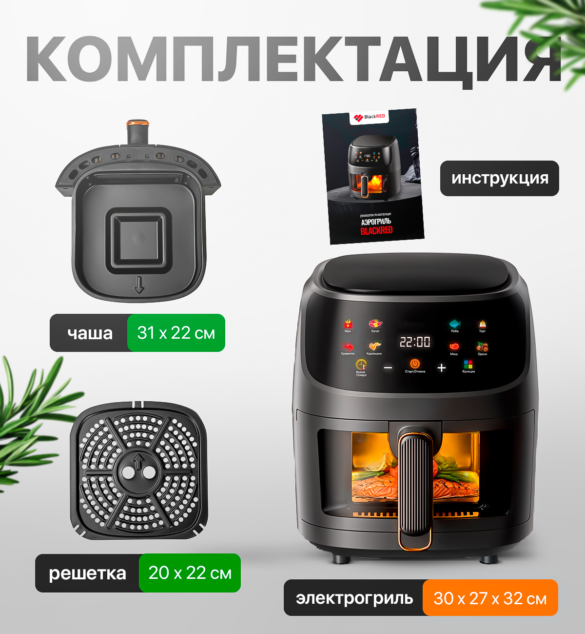 Аэрогриль BlackRED, 1350Вт, 5л, 3D-нагрев, 8 автоматических программ интересное:
