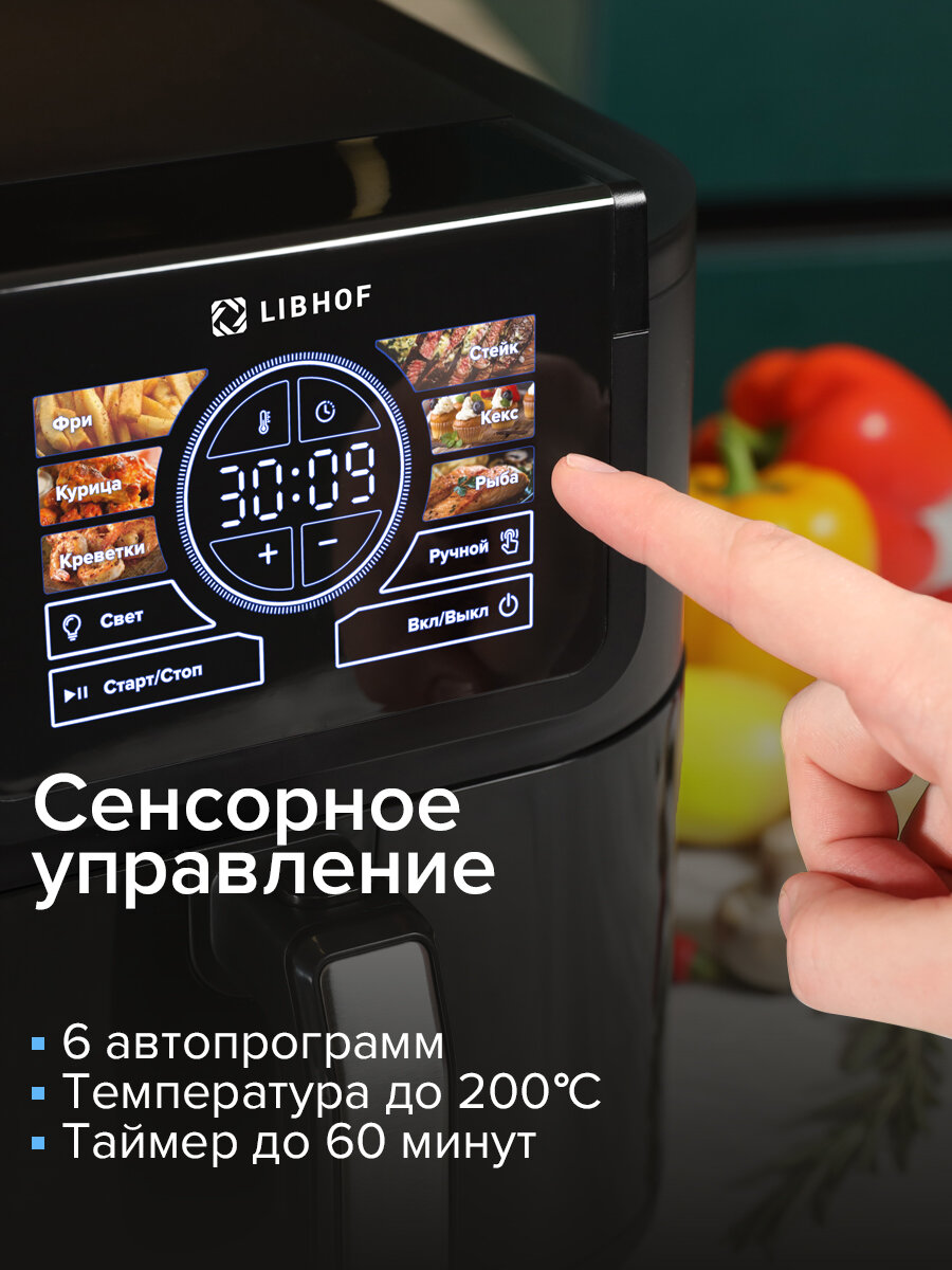 Аэрогриль Libhof AFB-08 black / объем 8 литров / 6 автопрограмм / удлиненная чаша интересное: