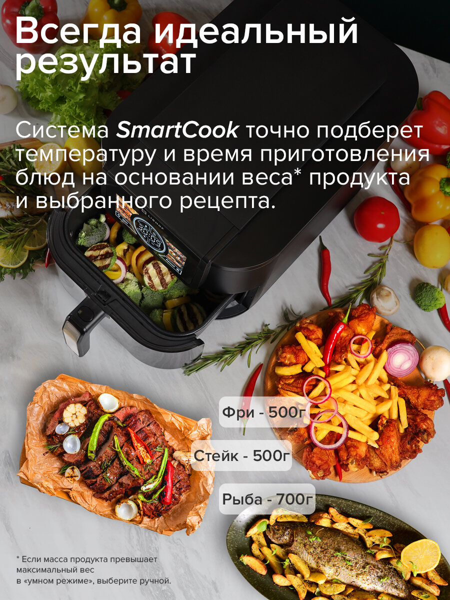 | Дополнительная информация | ручной режим, функция циркуляции воздуха 360°, система Slim bowl (удлинённая и узкая форма чаши), технологии SmartCook, смотровое окно в чаше, чаша на замке |