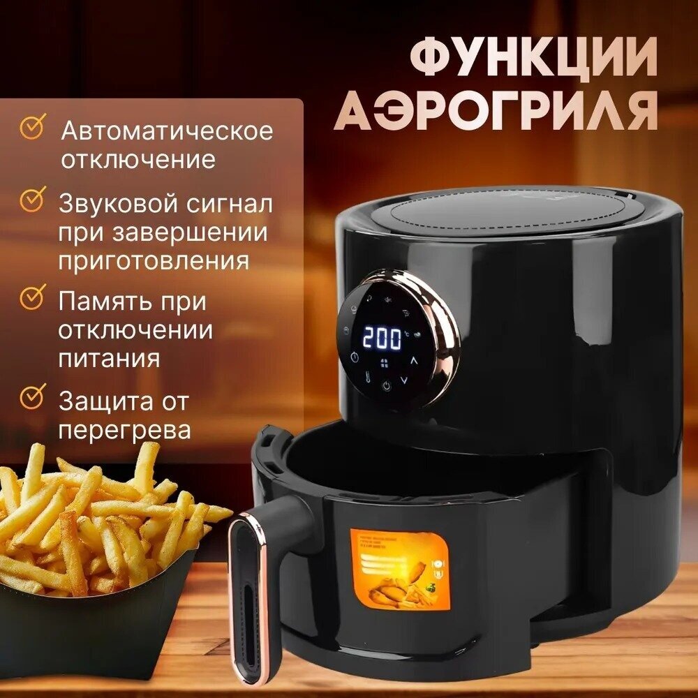 Аэрогриль электрический/Аэрофритюрница электрическая/объем 5.5 л /6 автоматических программ/для кухни 1350 Вт/черный интересное: