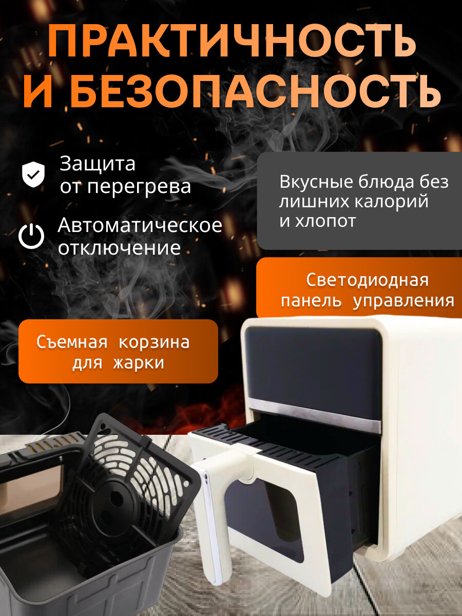 Аэрогриль, Аэрофритюрница электрическая/ 7 программ приготовления/объем 5 л /Мультипечь для кухни 1400 Вт, серый интересное: