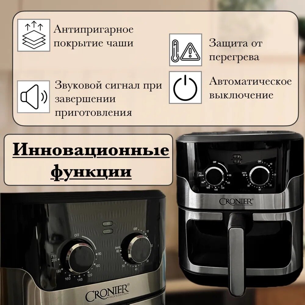 Аэрогриль Электрический CRONIER CR-8301, 1600 Вт / Аэрофритюрница для дома с чашей, 7.5 л