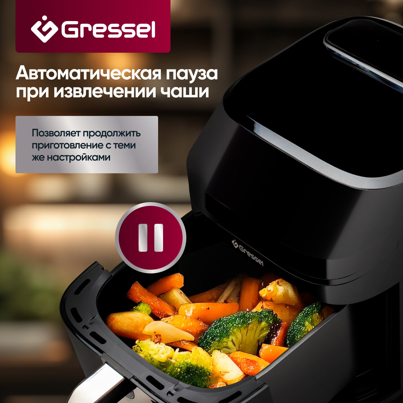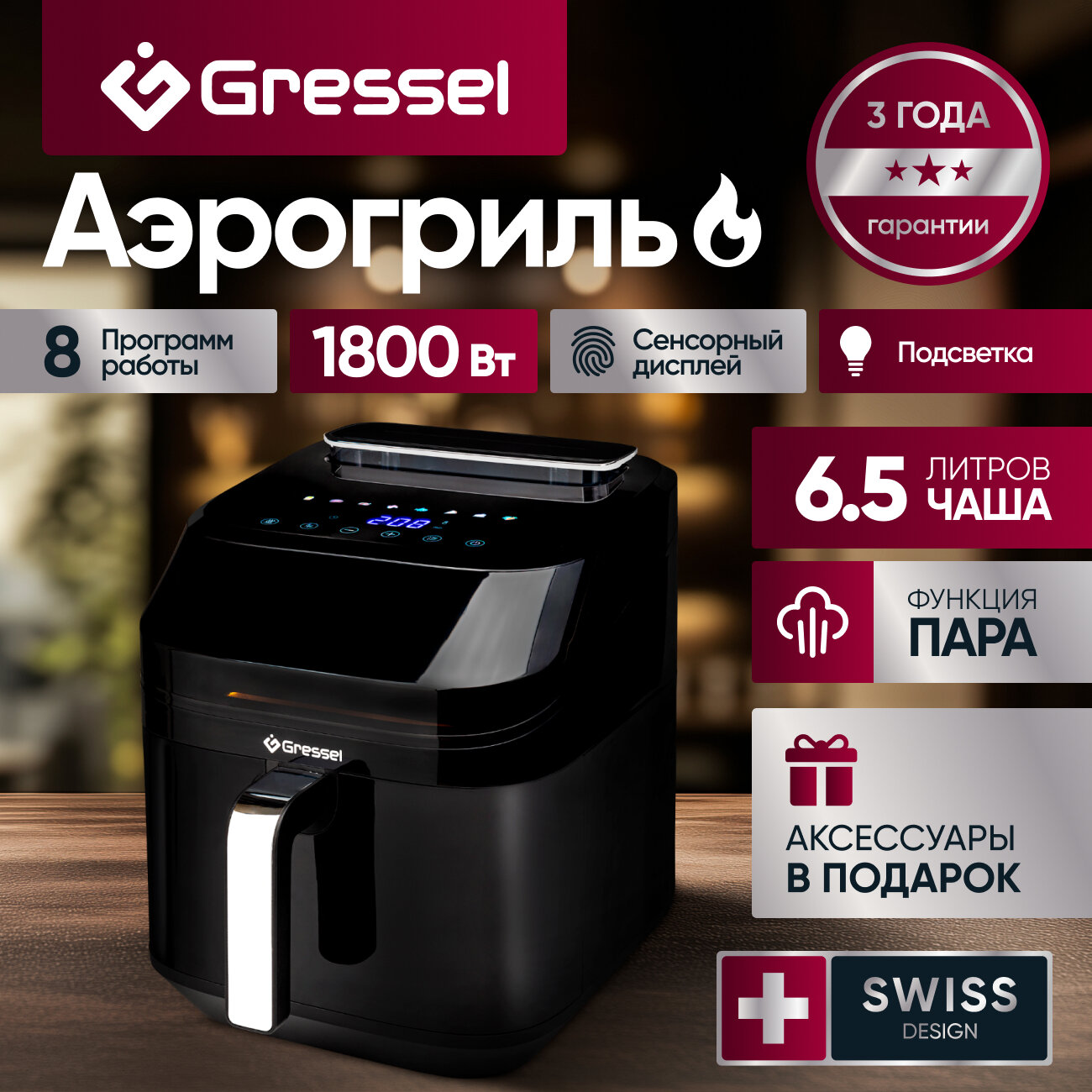 Купить Аэрогриль Gressel GAF-1823, 1800Вт, объём чаши 6.5 литров, 8 программ, сенсорный дисплей, функция пара, самоочистка