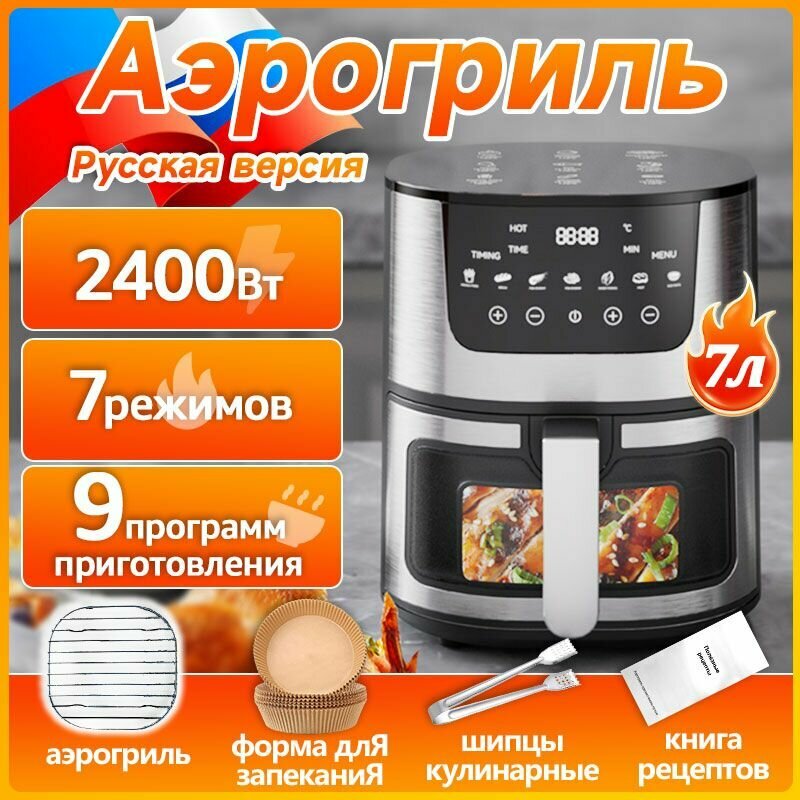 Купить Аэрогриль электрический Cozéchic 7л, Русская версия,4 подарKа многоцелевой,7 видами программ умный