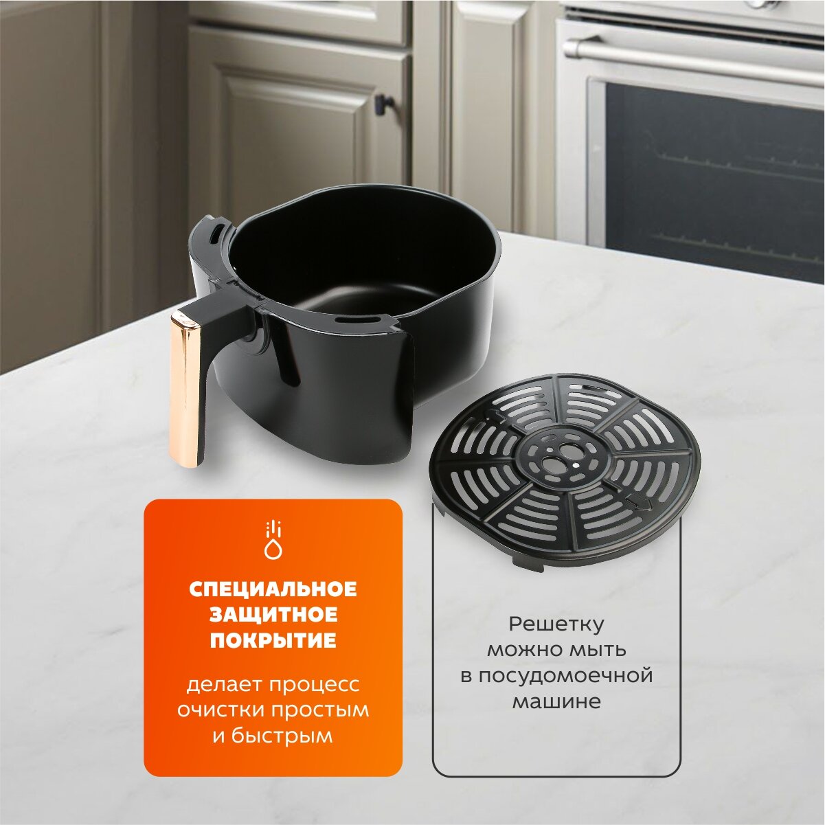 Инновационный аэрогриль Demiand kitchen, 12 программ, 3 аксессуара, книга рецептов, объем 6л, 1400W, DK-1900