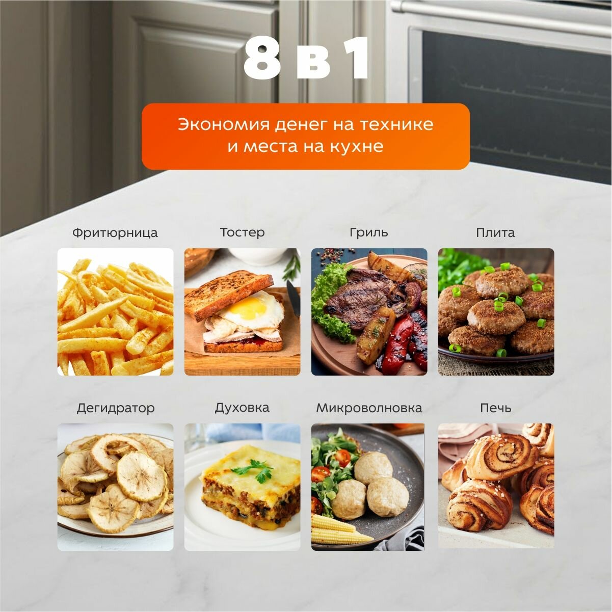 Инновационный аэрогриль Demiand kitchen, 12 программ, 3 аксессуара, книга рецептов, объем 6л, 1400W, DK-1900