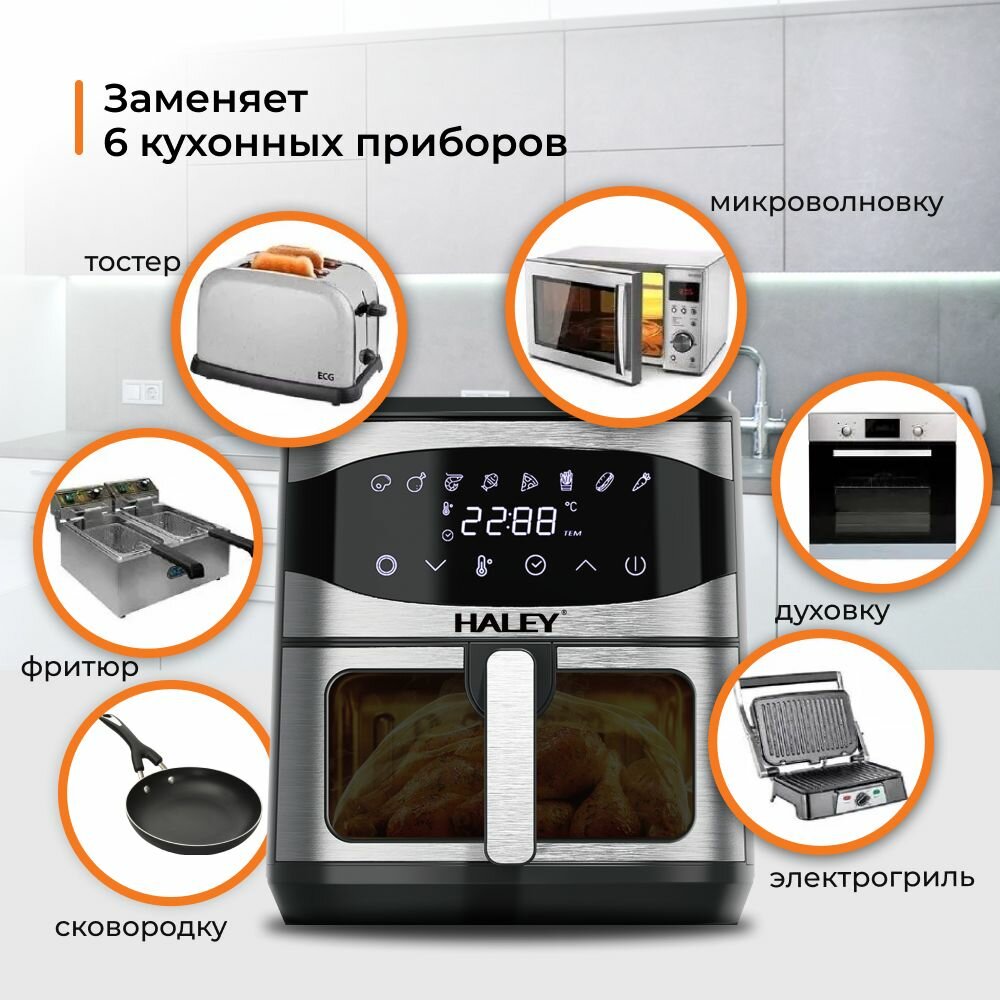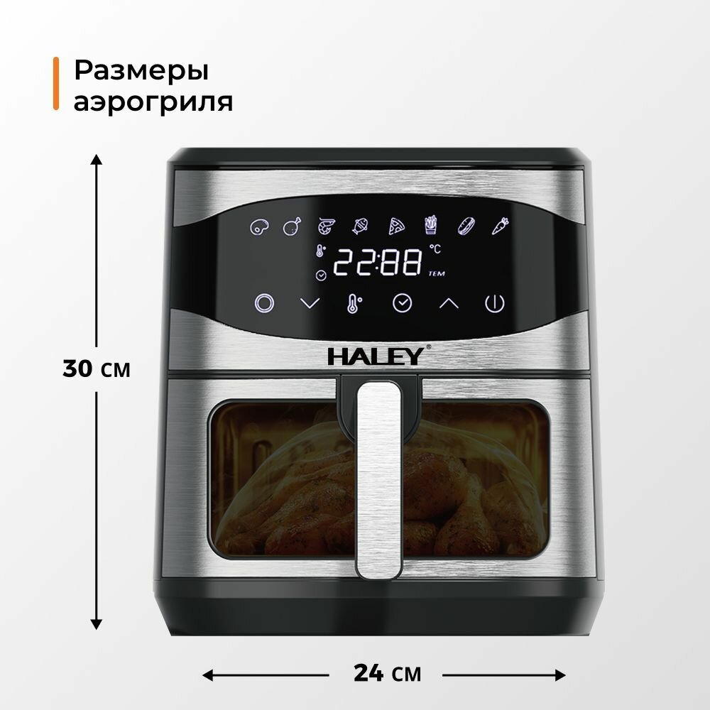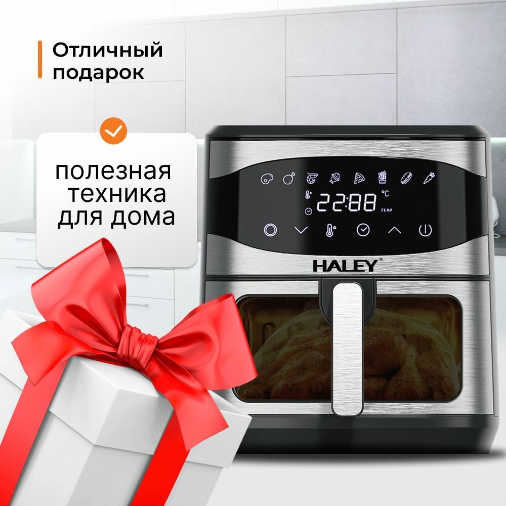 HALEY-2511 Аэрогриль электрический 8 в 1, объем 8 л, мощность 2000 Вт, мультипечь 8 программ, сенсорным управлением, черный цвет интересное: