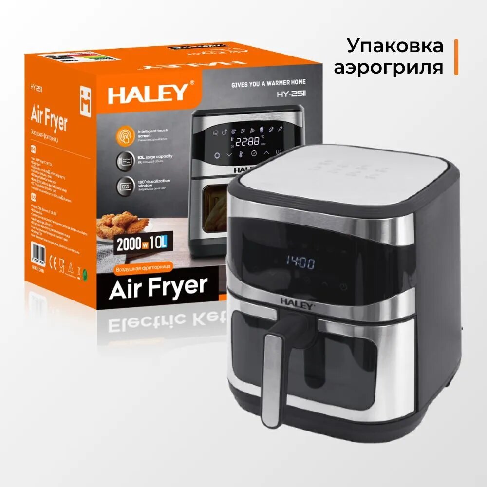 HALEY-2511 Аэрогриль электрический 8 в 1, объем 10 л, мощность 2000 Вт, мультипечь 8 программ, с сенсорным управлением интересное: