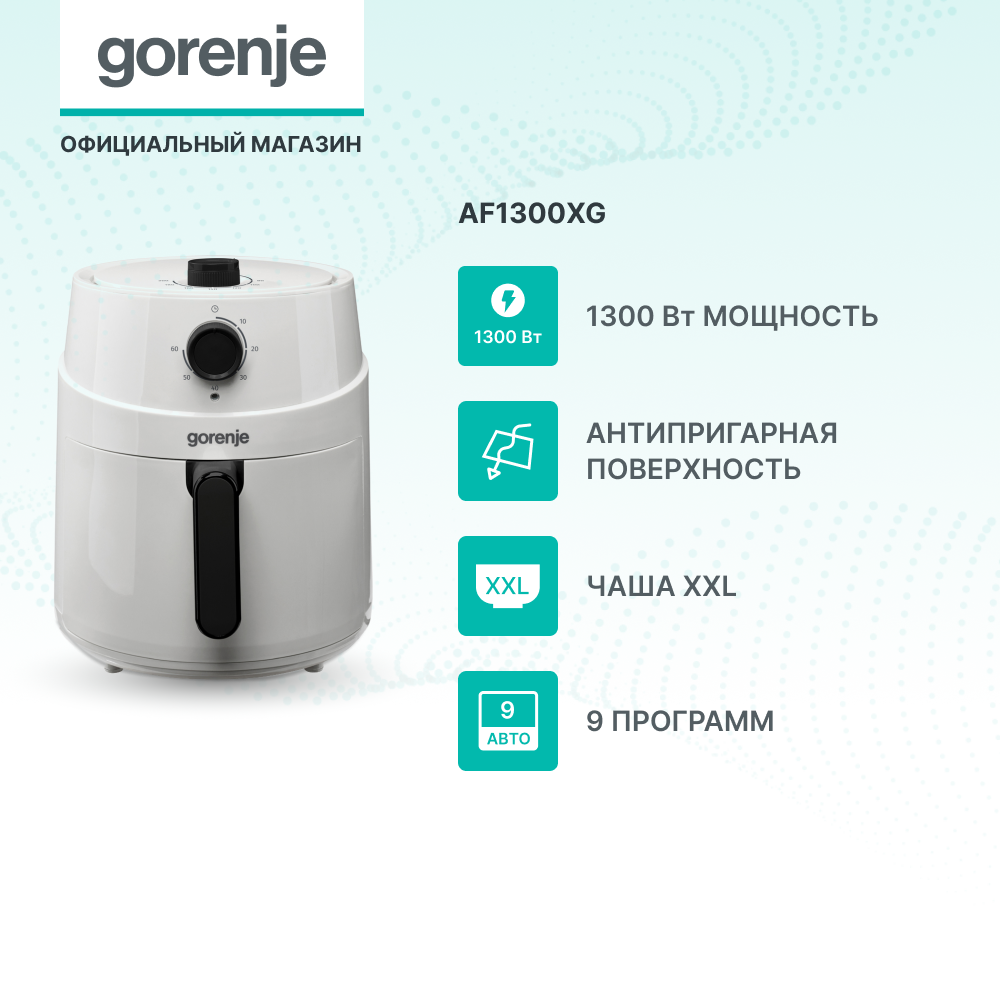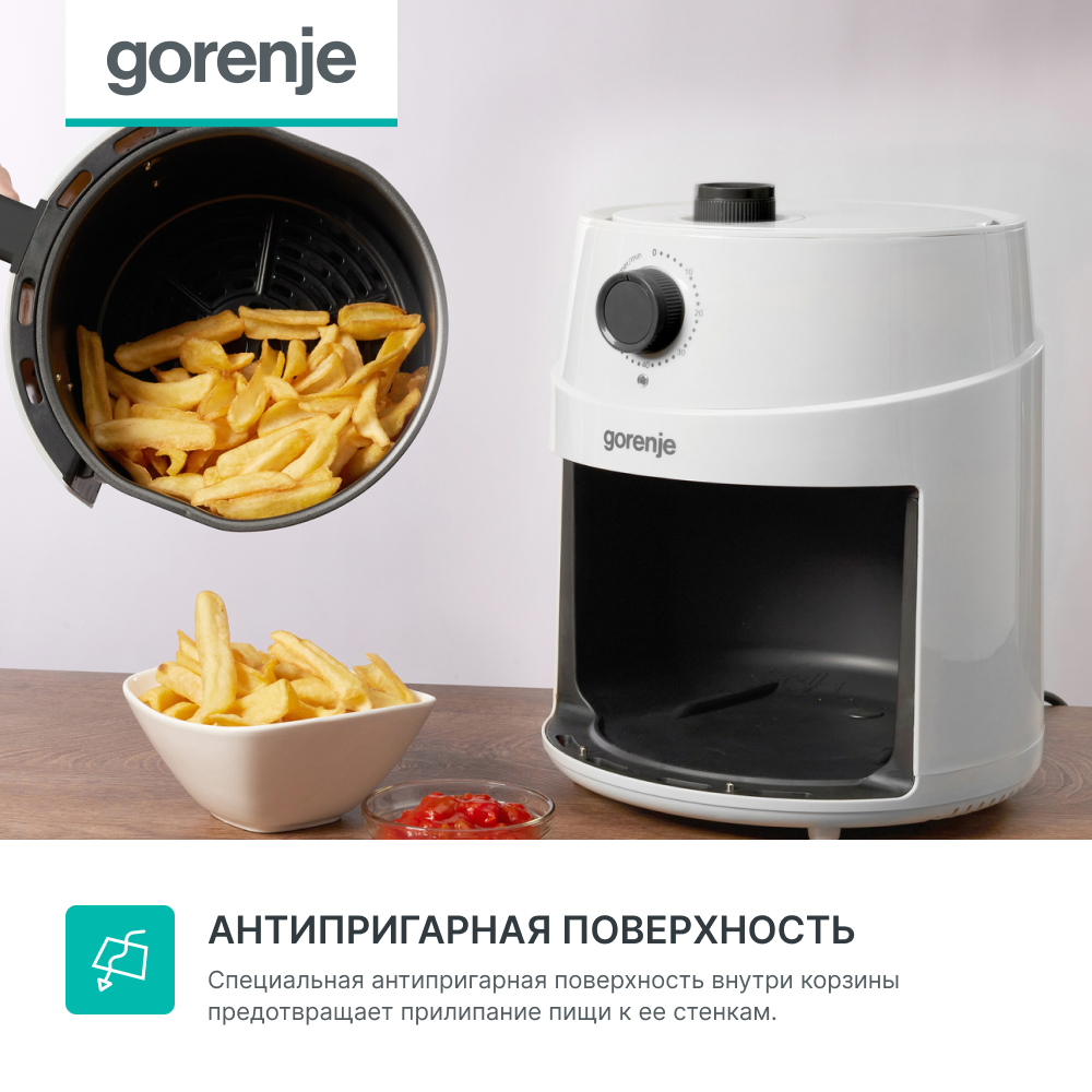 Аэрогриль Gorenje AF1300XG белый/черный, мощность 1400Вт, нагревательный элемент: ТЭН интересное: