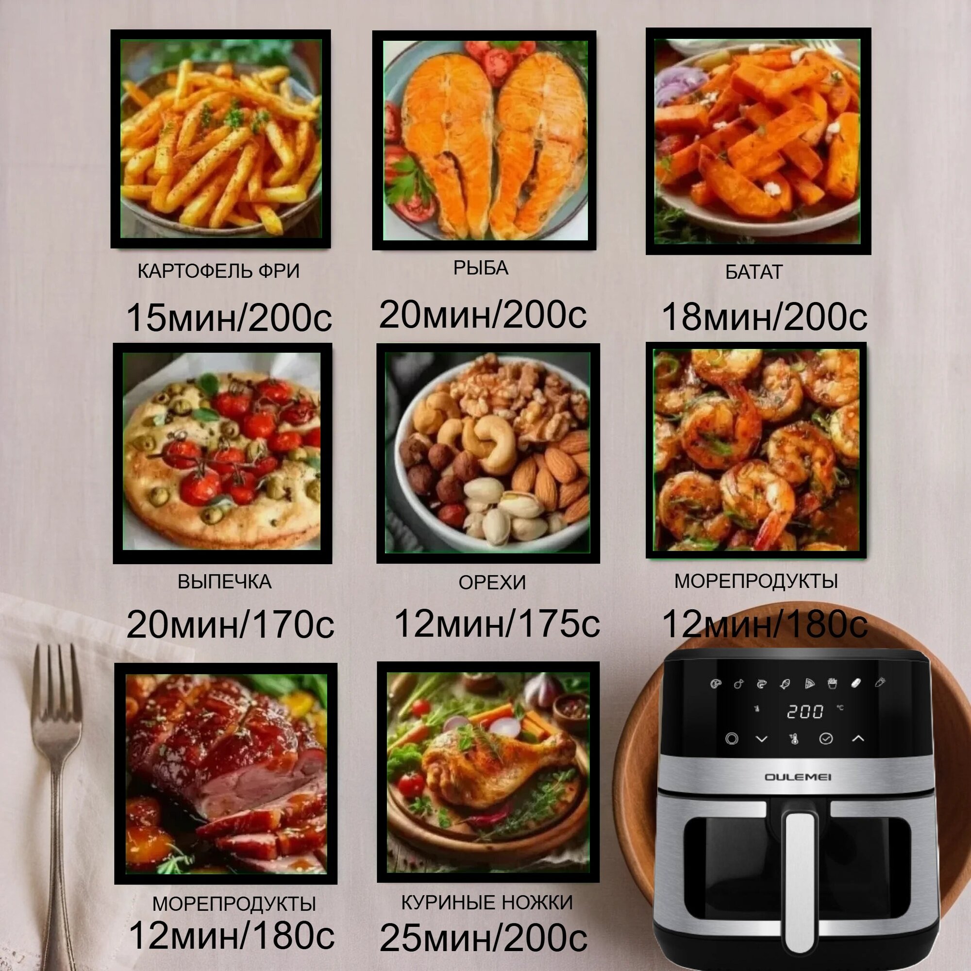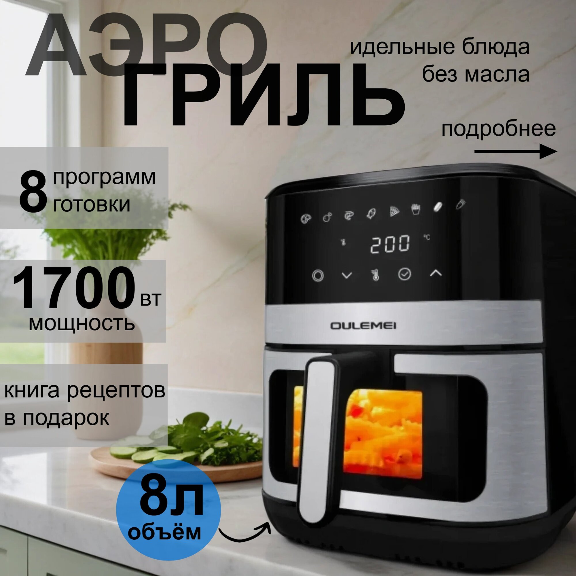 Аэрогриль электрический с антипригарным покрытием 8л/1700Вт/8 автоматических программ интересное: